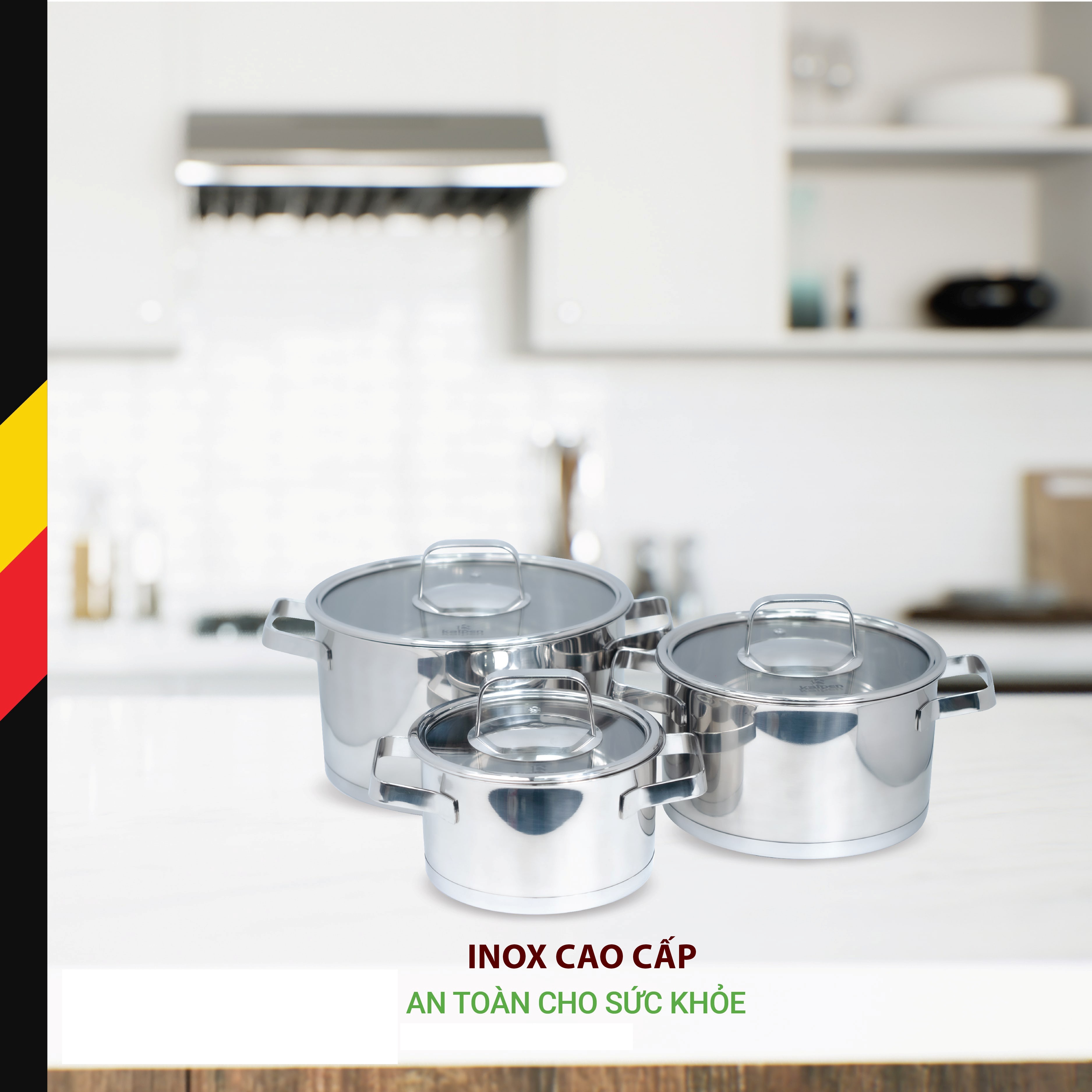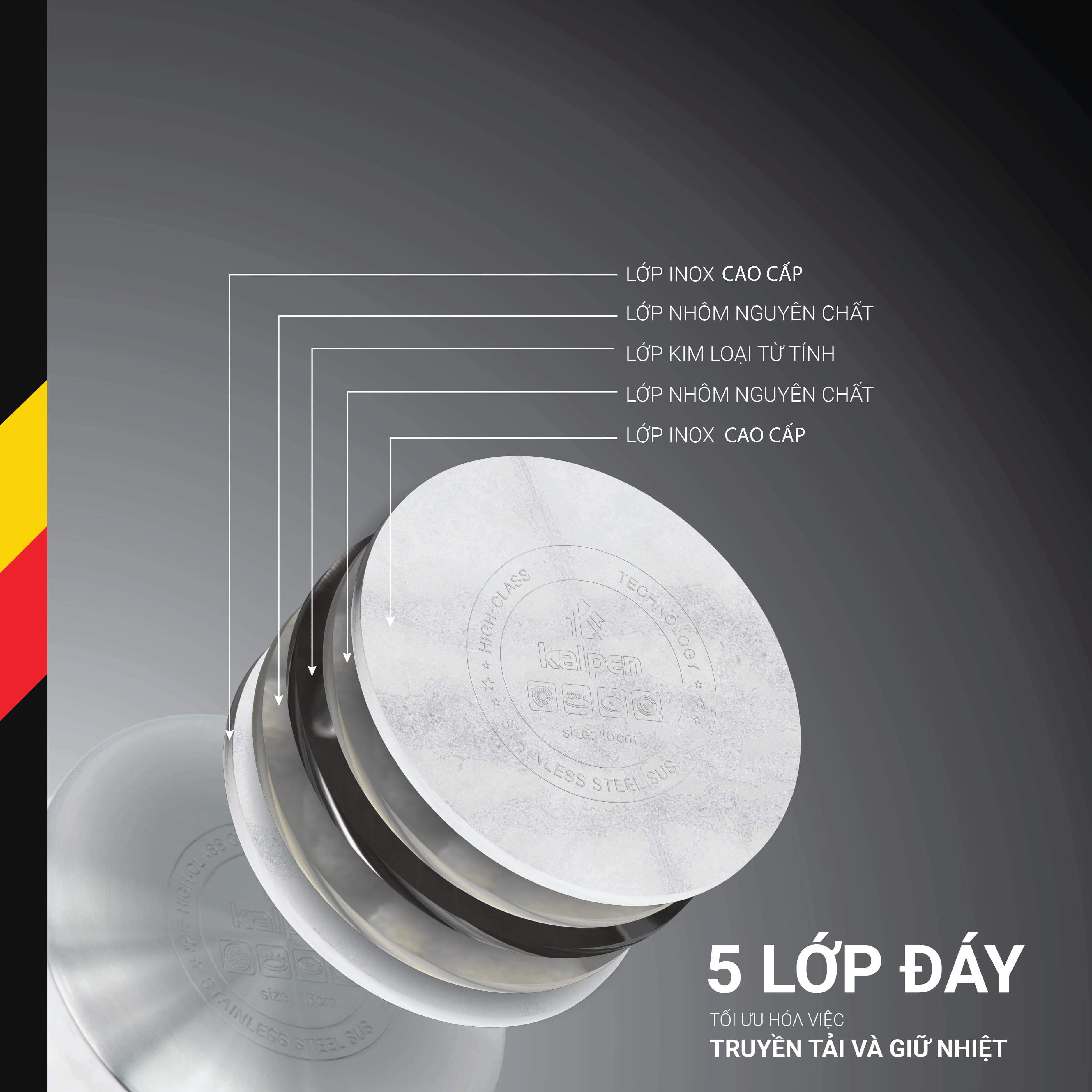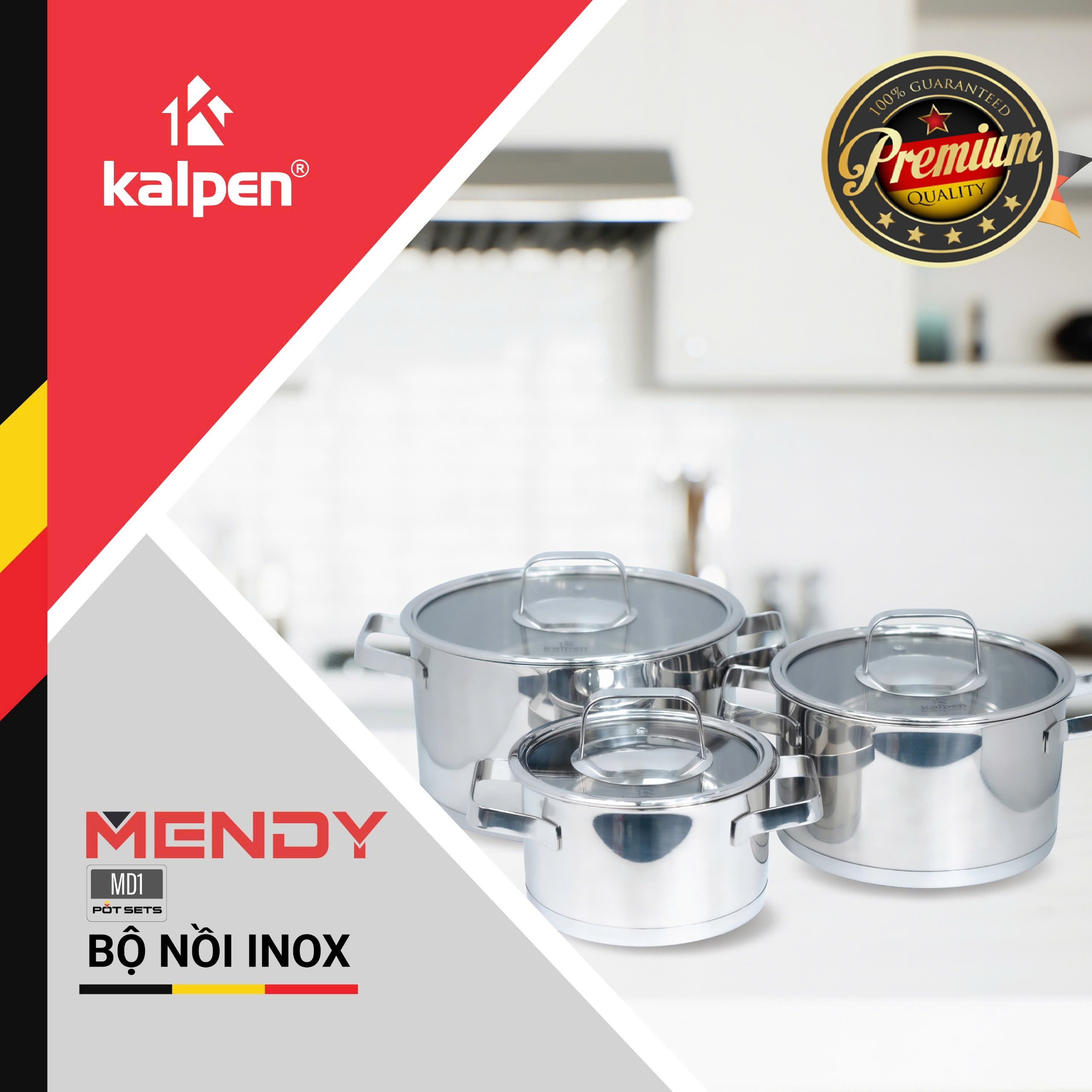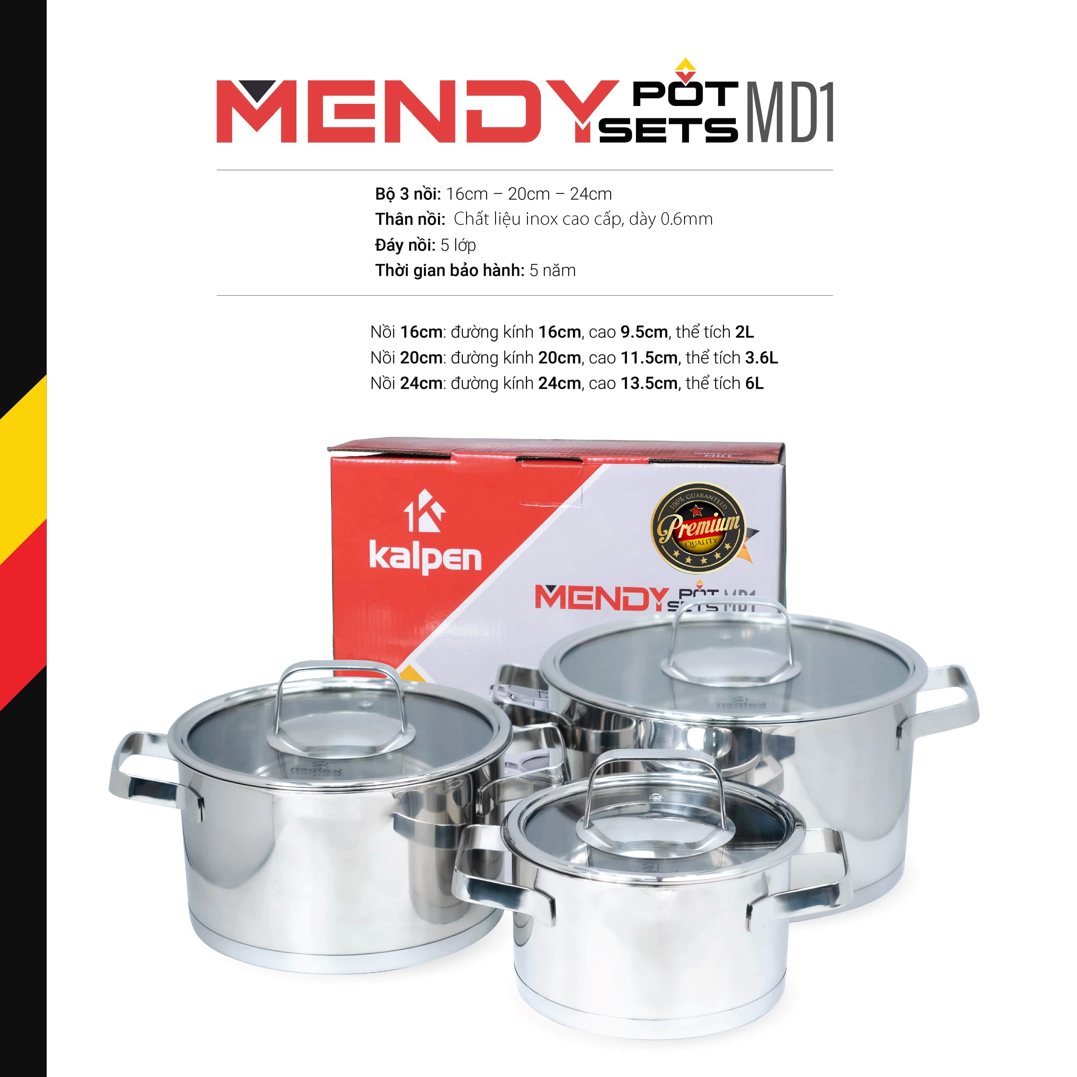 Bộ nồi inox cao cấp 5 đáy Kalpen Mendy MD1 là một sản phẩm được thiết kế, sản xuất và phân phối bởi Kalpen Việt Nam.