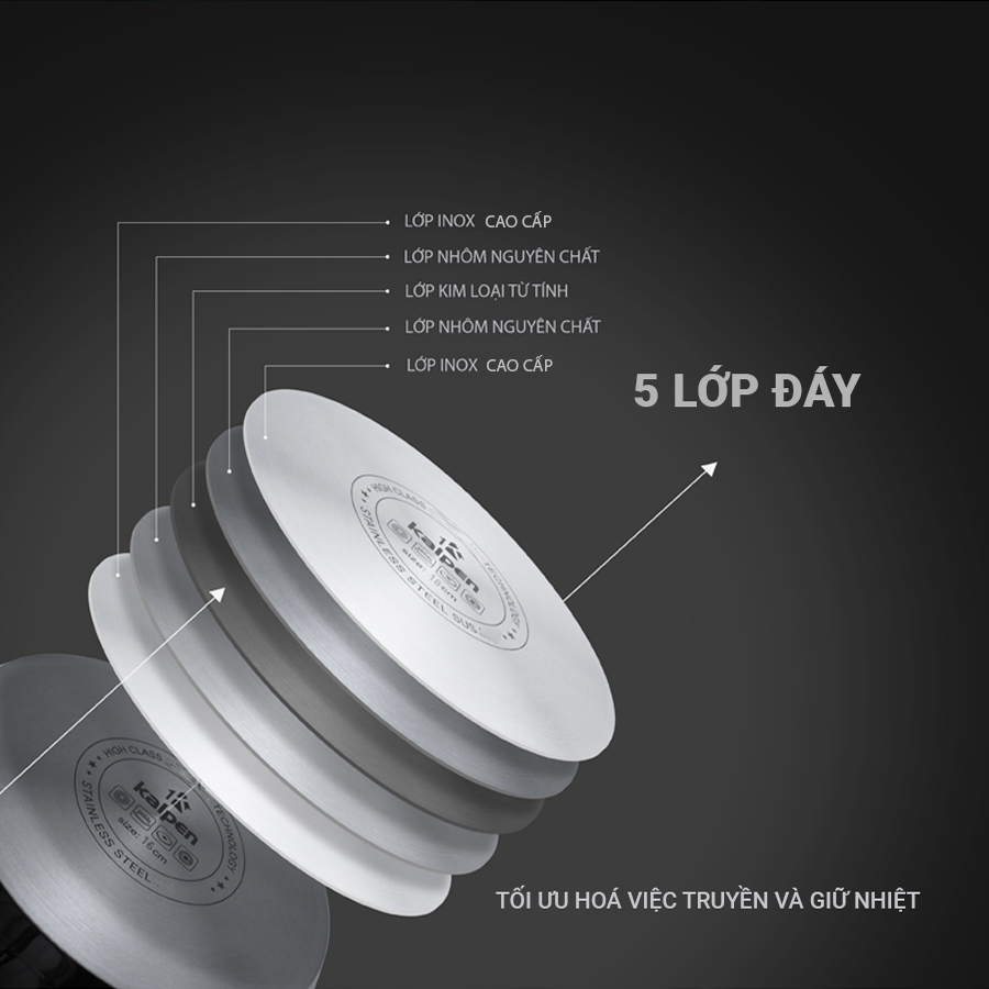 Cấu tạo 5 lớp đáy tăng khả năng truyền nhiệt và giữ nhiệt giúp thực phẩm chín đều, chín nhanh, giữ được màu sắc và hương vị đặc trưng của món ăn: