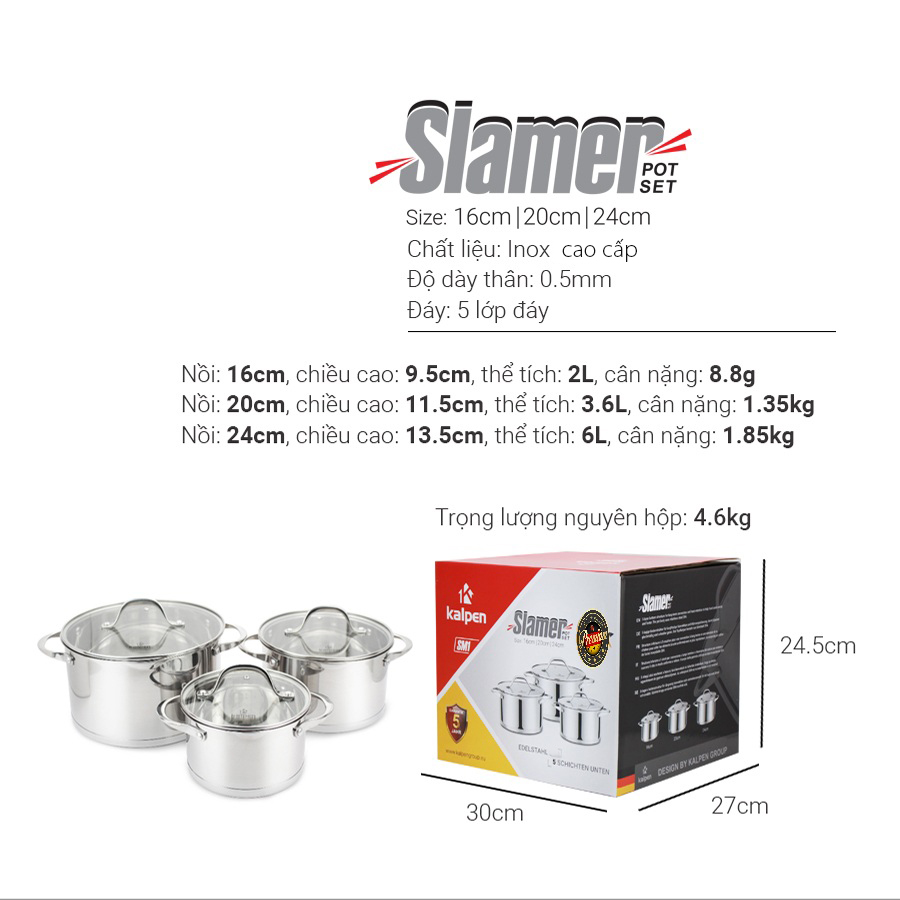 Kalpen xin giới thiệu bộ nồi inox cao cấp đáy 5 lớp Kalpen Slamer – sản phẩm đẹp, tiện lợi, an toàn cho sức khỏe người sử dụng.