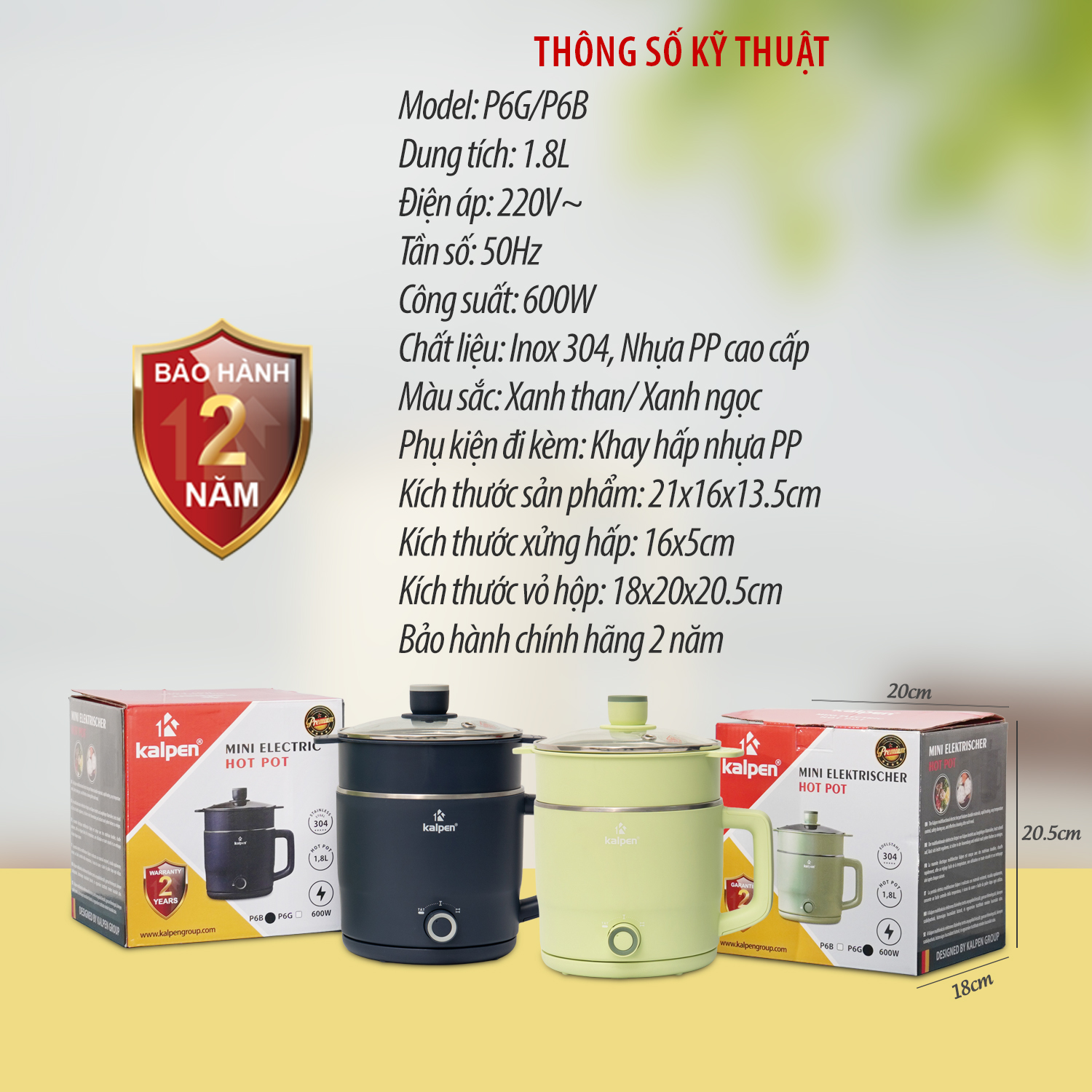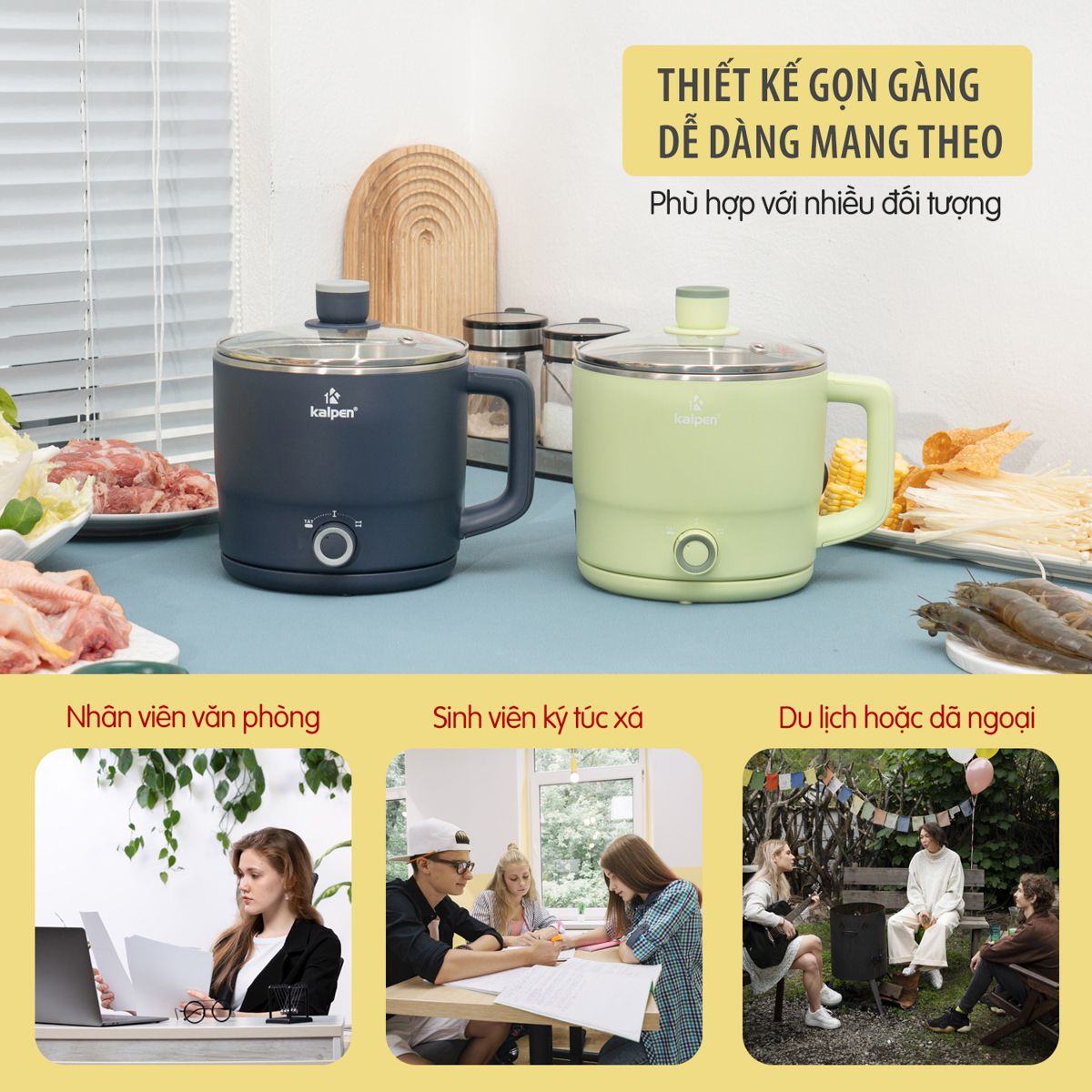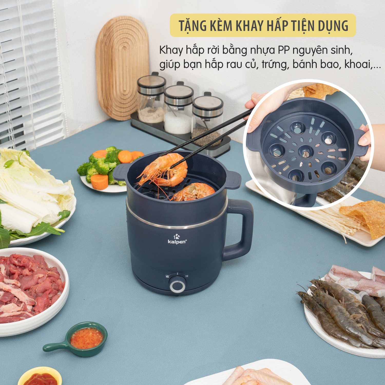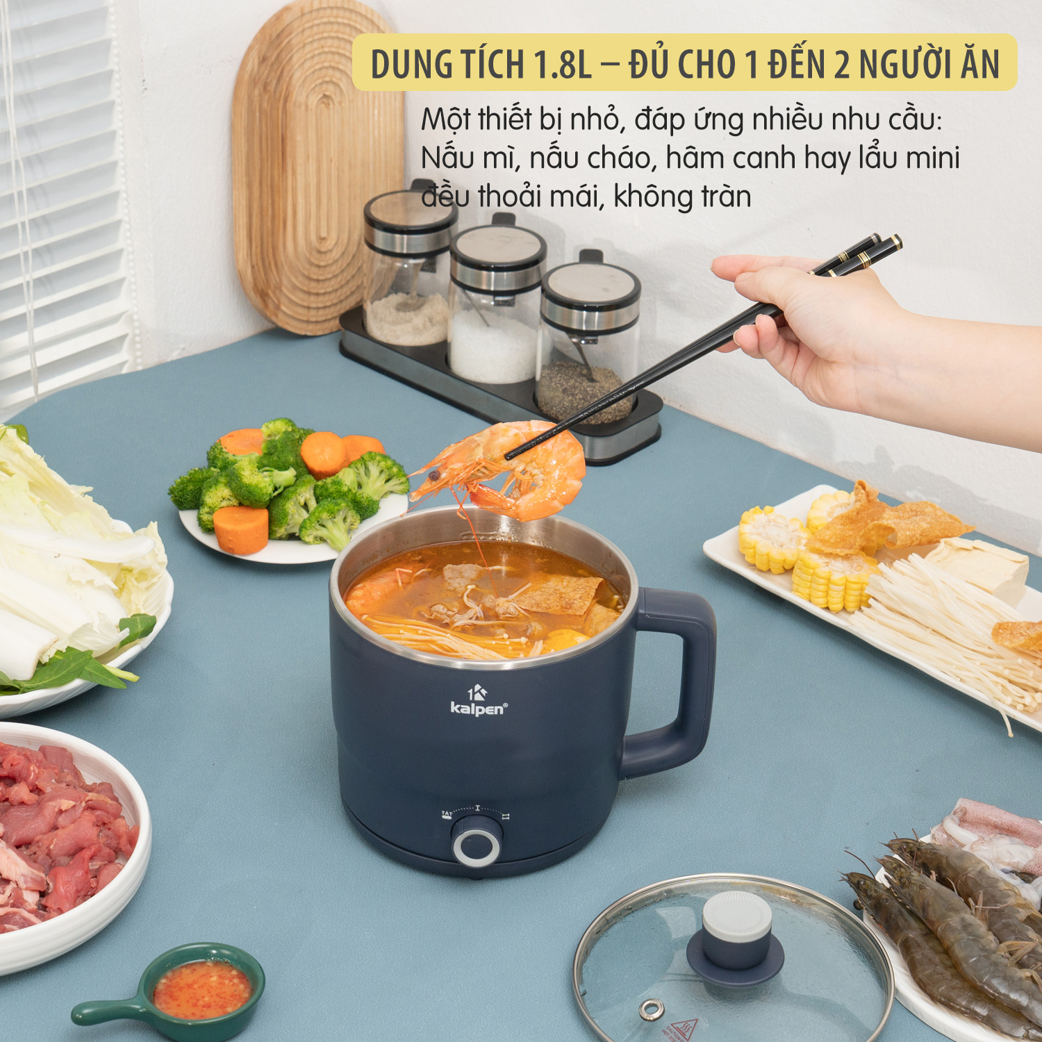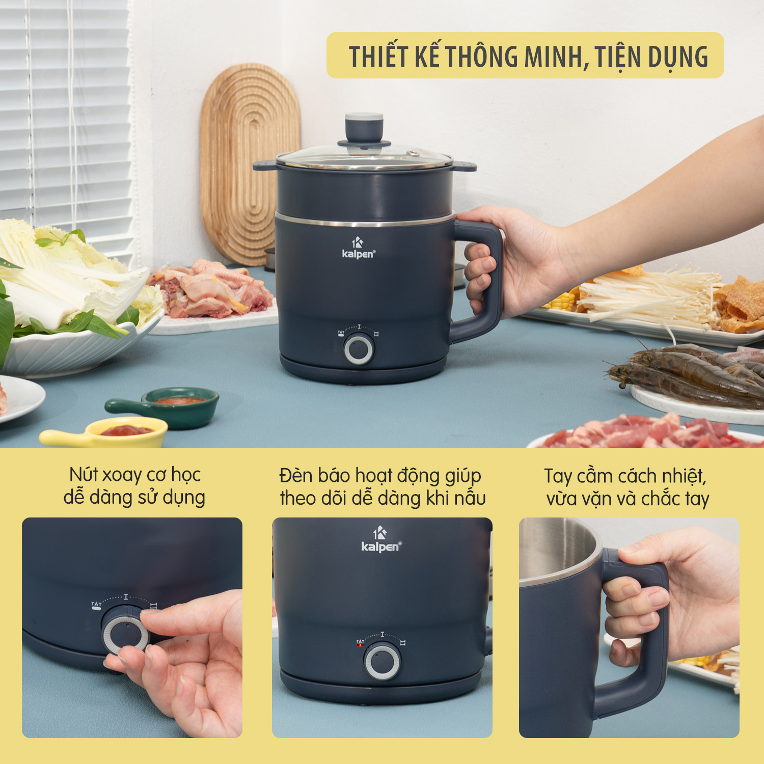 Với thiết kế thông minh và tính năng đa năng, ca lẩu điện mini Kalpen 1.8L có khay hấp đáp ứng được nhiều nhu cầu sử dụng khác nhau, phù hợp với nhiều hoàn cảnh và phong cách sống hiện đại.