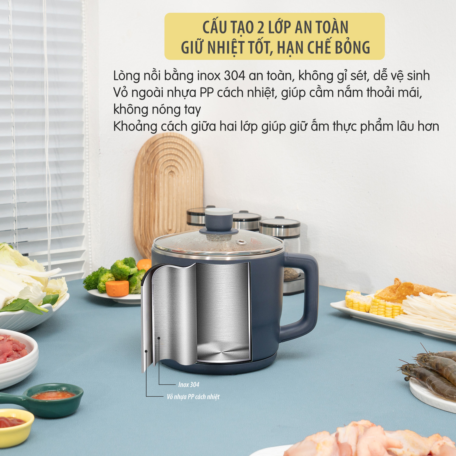 Nhờ sự linh hoạt này, người dùng dễ dàng chế biến nhiều loại thực phẩm khác nhau chỉ với một chiếc ca lẩu điện mini, mà không cần chuẩn bị thêm nhiều dụng cụ nấu nướng cồng kềnh.