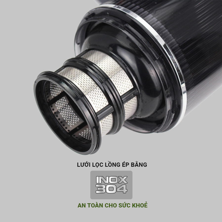 Lưới lọc bằng thép không gỉ 304 ở máy ép chậm Kalpen J6 giúp chống bám cặn và dễ vệ sinh hơn rất nhiều so với các dòng máy thông thường.