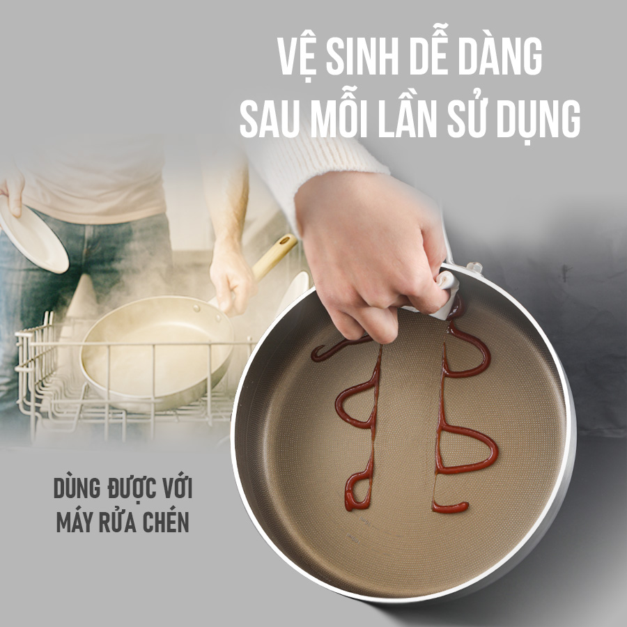 Dù chảo đang ở nhiệt độ cao, bạn vẫn có thể cầm nắm, di chuyển dễ dàng mà không lo bị bỏng – một điểm cộng lớn dành cho các chị em nội trợ hay người lớn tuổi trong gia đình.