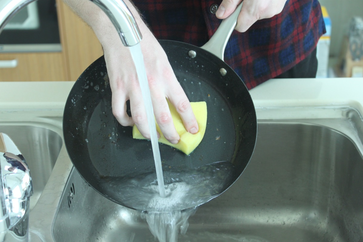 5. Tránh thói quen sau khi nấu ngâm chảo vào nước lạnh đột ngột khiến chảo bị sốc nhiệt.