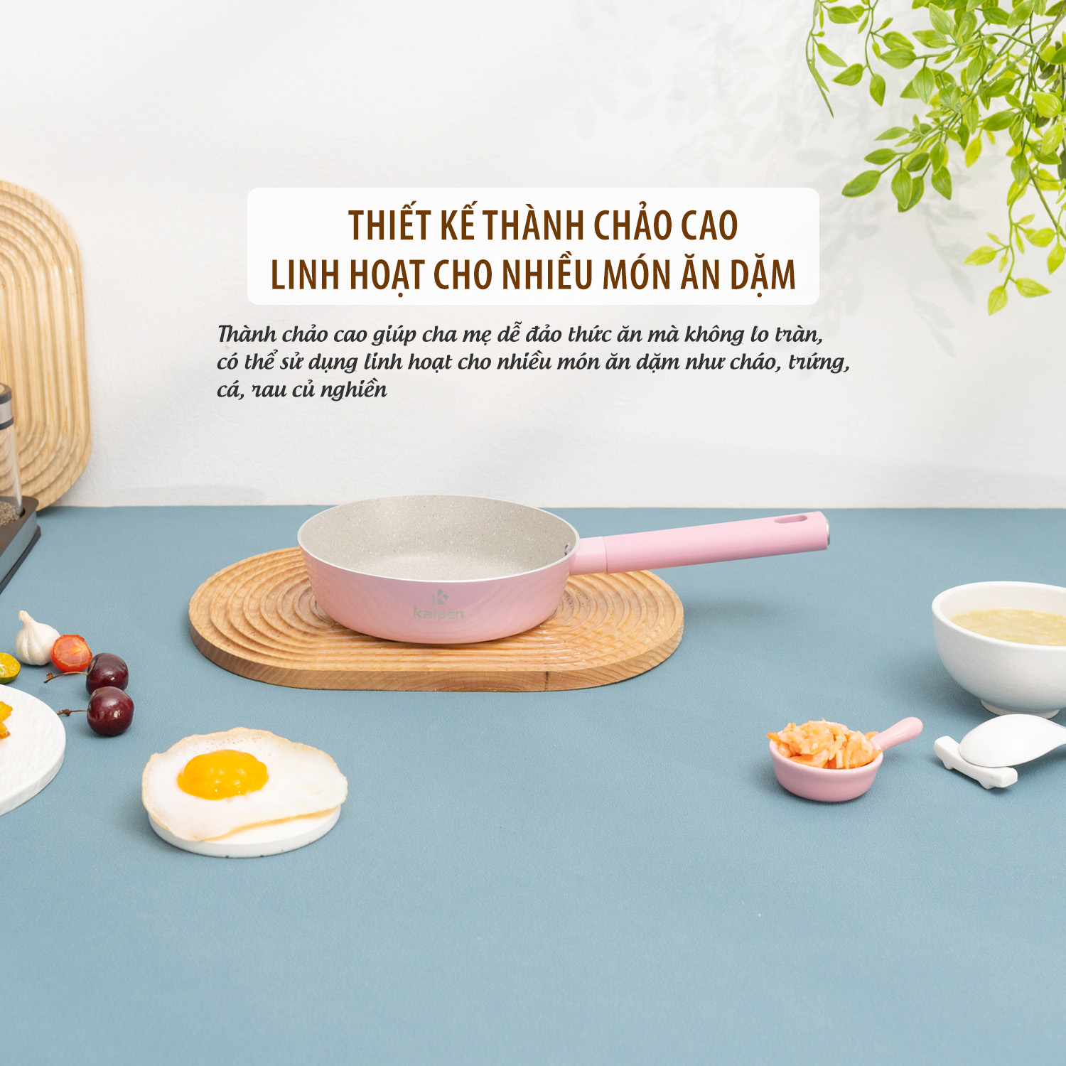 Thành chảo chống dính Kalpen Baby cao vì thế ngoài việc sử dụng chảo để rán thì có thể sử dụng để xào nấu đồ ăn một cách dễ dàng.