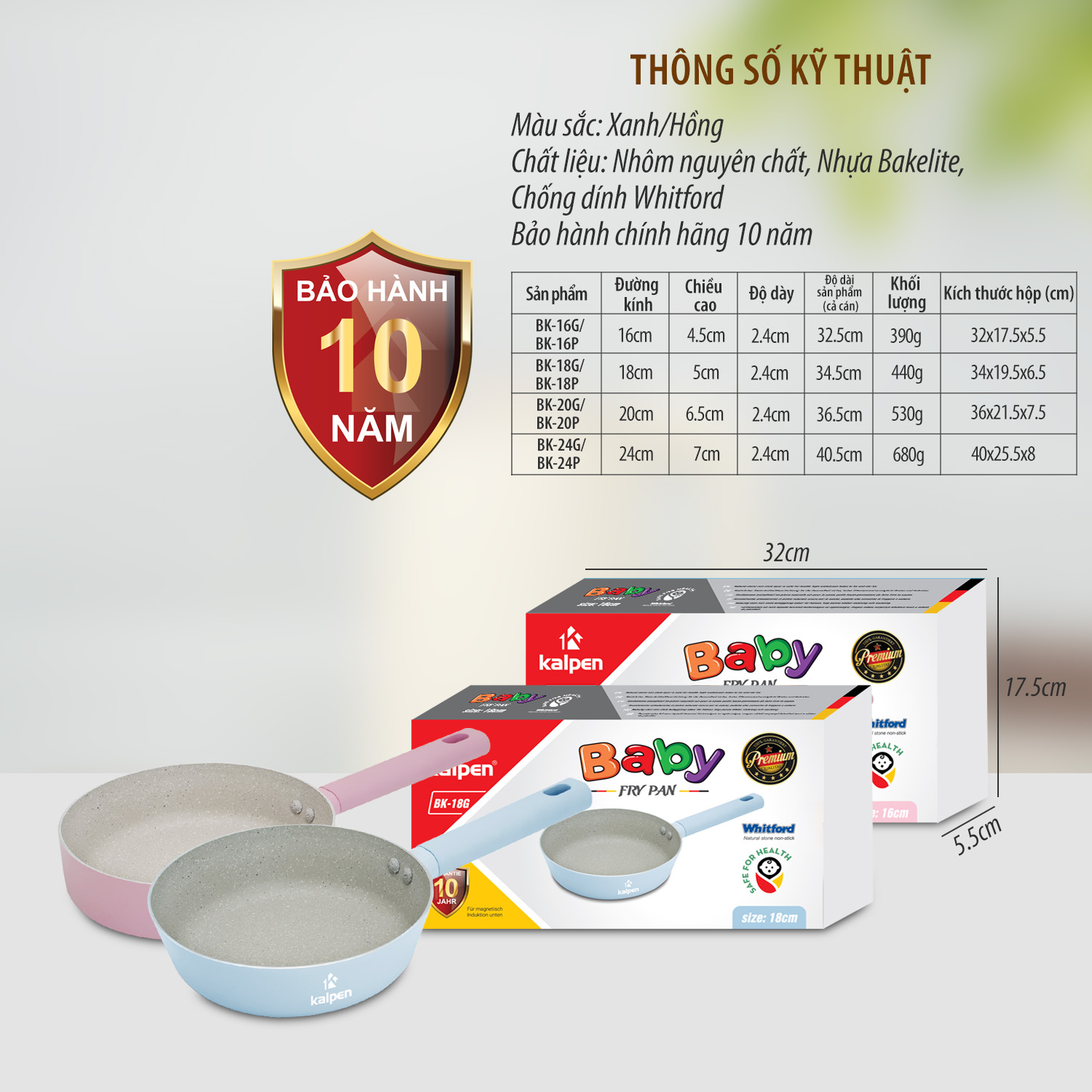 Chảo chống dính Kalpen Baby được thiết kế nhẹ, đẹp, màu sắc tím và xanh nhạt tinh tế, hiện đại.