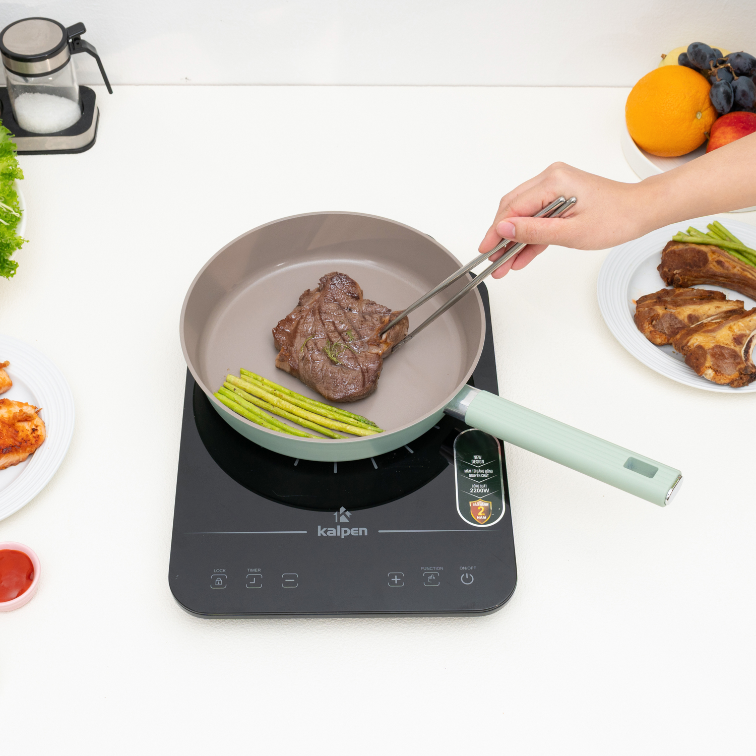 Chảo được tích hợp đế từ (Induction base) cho khả năng bắt nhiệt nhanh và ổn định, sử dụng linh hoạt trên bếp từ, bếp gas, bếp hồng ngoại và bếp điện. Đáy chảo được dập logo Kalpen, chống trượt, hạn chế cong vênh và tăng độ bền theo thời gian.