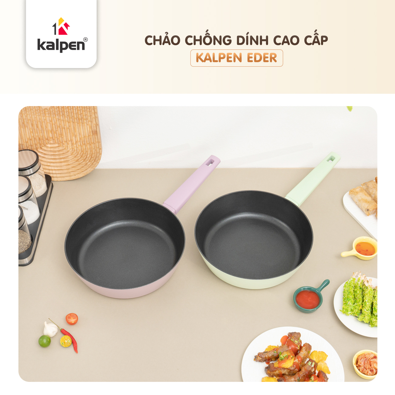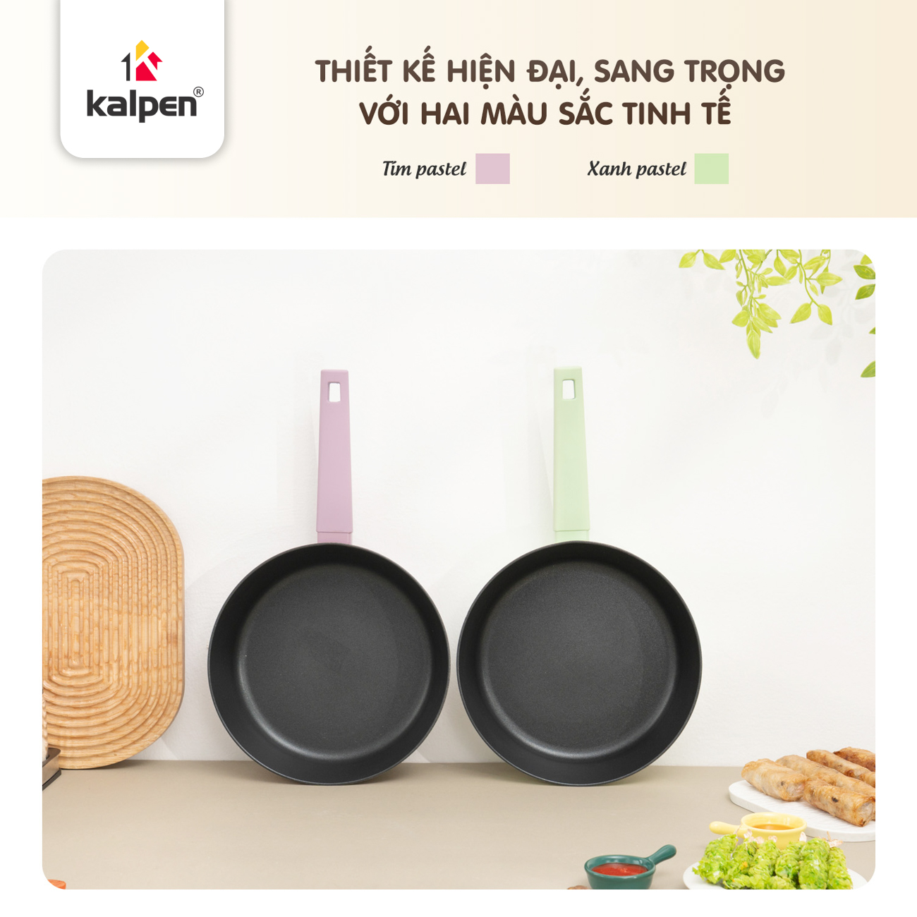 Chảo có hai lựa chọn màu xanh nhạt và tím nhạt, mang đến vẻ đẹp tinh tế, góp phần tạo điểm nhấn sang trọng cho không gian bếp.