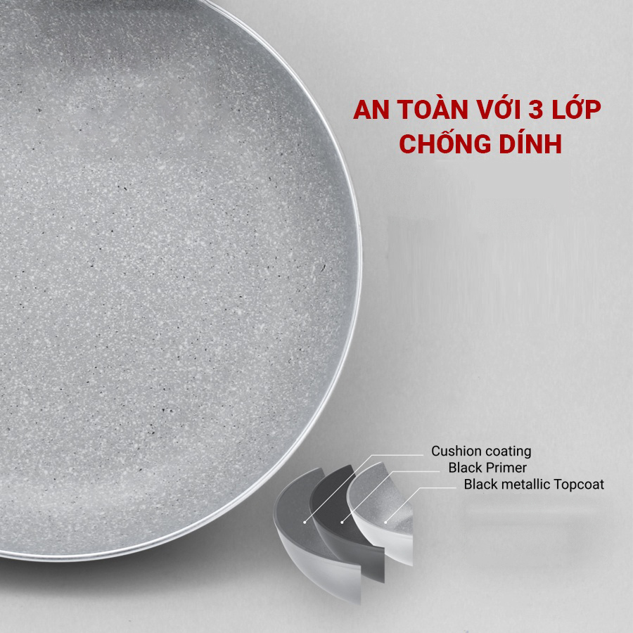 Ngoài ra độ dày 3mm giúp giảm thiểu khả năng bị lồi đáy khi sử trên các loại bếp từ, bếp gas, bếp hồng ngoại. Nó giảm thiểu khả năng bị phồng hoặc biến dạng đáy chảo, duy trì độ phẳng và ổn định trong quá trình sử dụng.