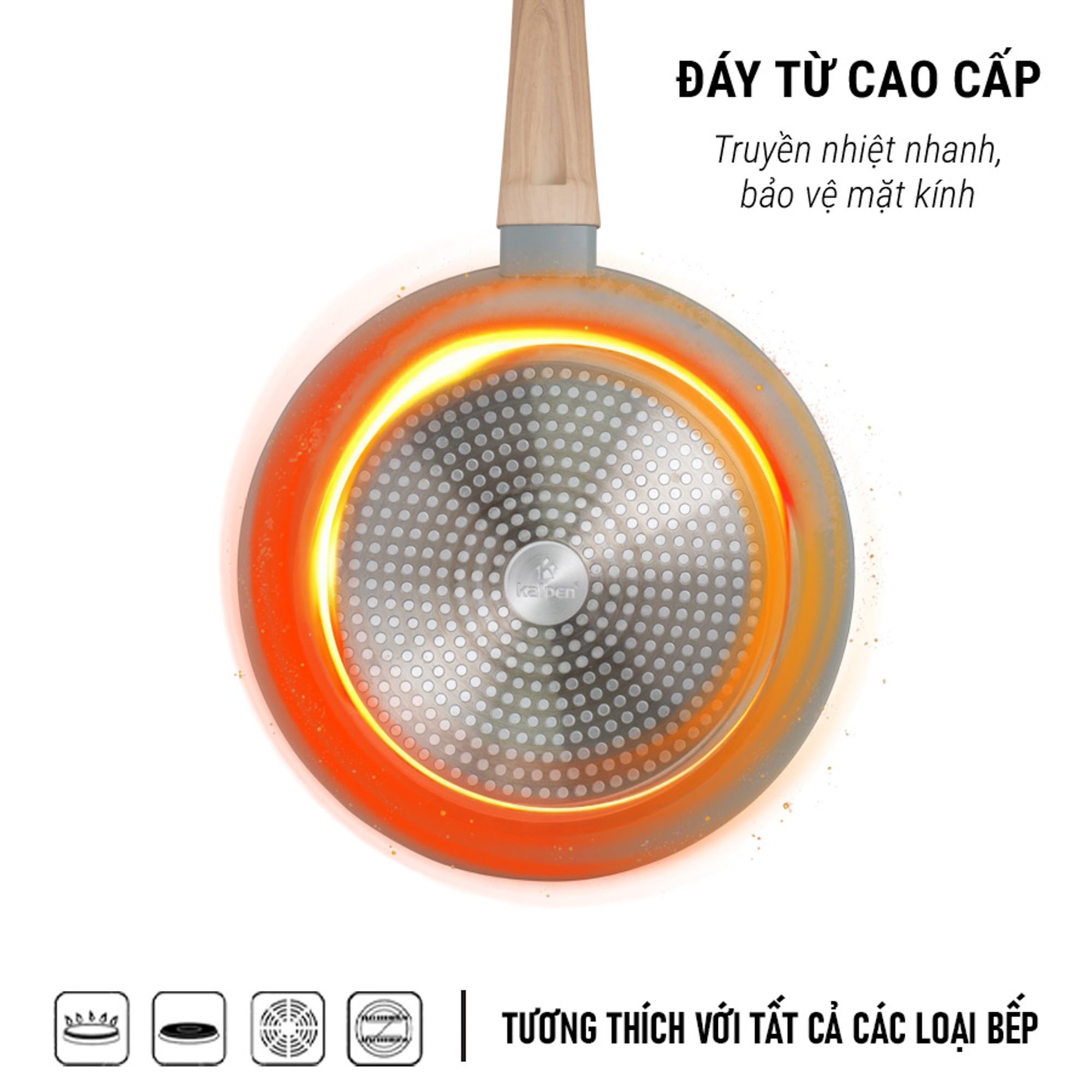 Chảo chống dính Kalpen Suder thiết kế đáy từ cao cấp, sử dụng linh hoạt trên tất cả các thiết bị bếp: bếp từ, bếp gas, bếp hồng ngoại...