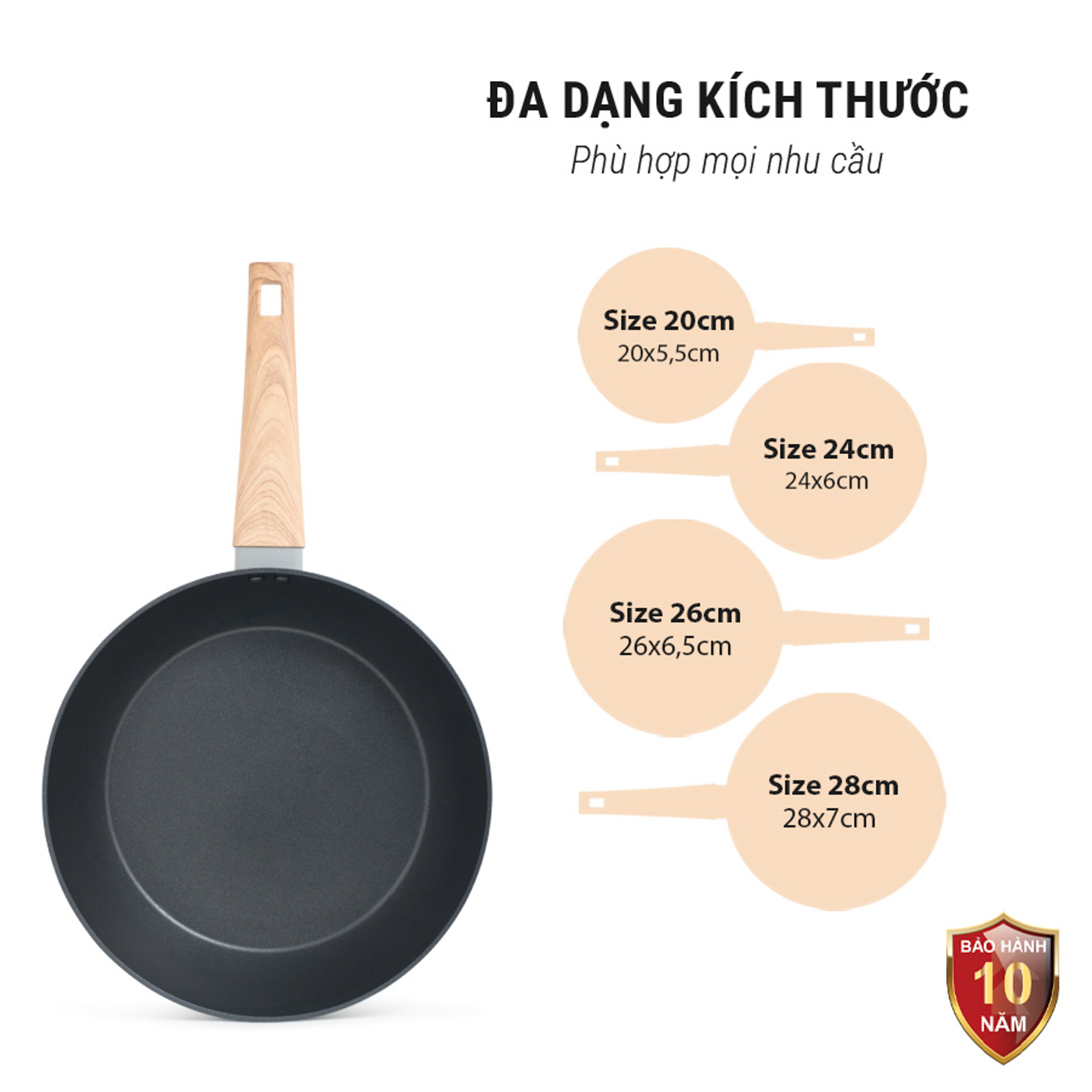 Chảo 26cm: Kích thước 26x7cm – Độ dày 2.4mm - Model SD26