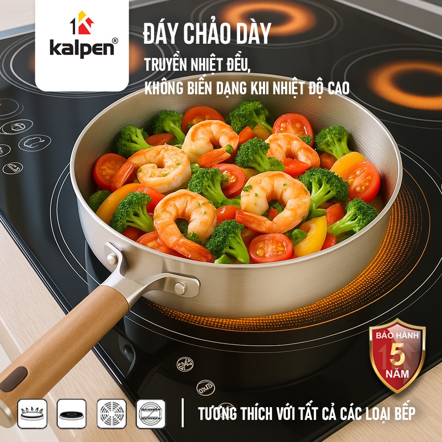 Chảo tương thích với bếp từ, bếp gas, bếp điện và các loại bếp khác.