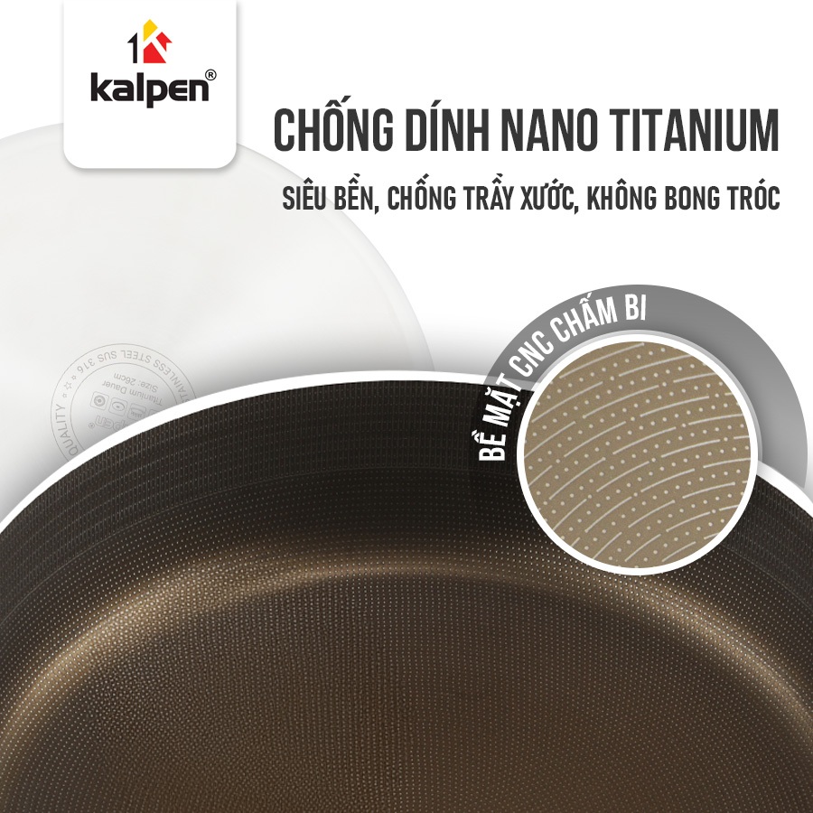 Video giới thiệu chảo Inox 304 liền khối phủ Titanium Kalpen Dauer size 16-20-24-26-28 cm