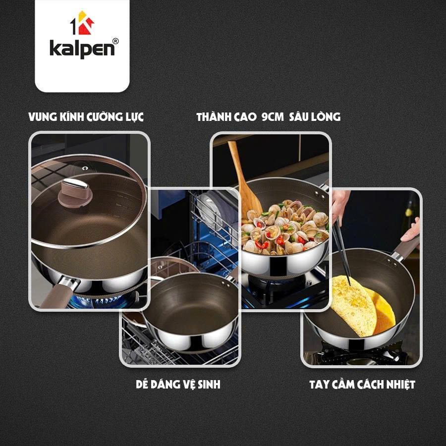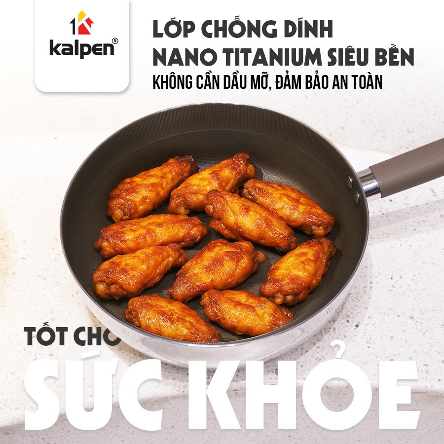 Video giới thiệu chảo Inox 304 liền khối phủ Titanium Kalpen Shield size 20-24-26-28 cm