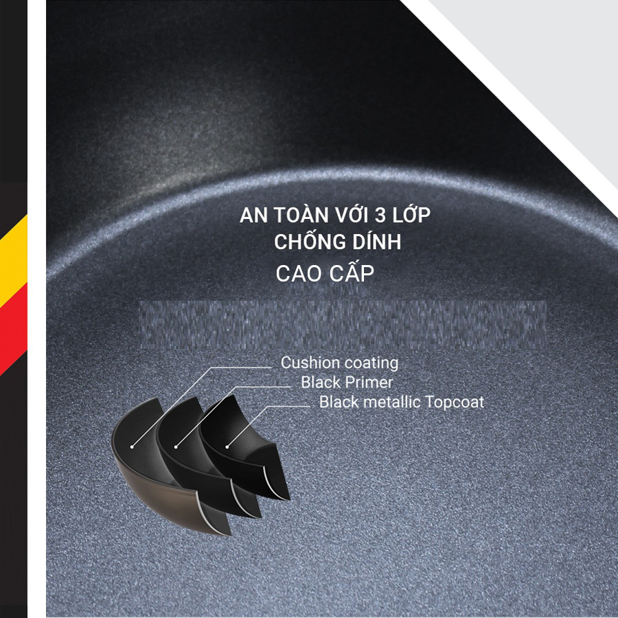 Sử dụng chống dính 3 lớp cao cấp an toàn và không giải phóng chất PFOA gây ung thư, siêu bền với độ dày 50µm có khả năng chà sát lến đến 80.000 lần. Cùng với đó, Chảo Chống Dính được thiết kế với 2 màu sắc rất được ưa chuộng năm 2022 đó là màu xanh mint và màu xám. Nếu bạn là người thích sự thanh mát, mới lạ thì có thể chọn màu xanh mint, còn nếu bạn thích sự nhẹ nhàng, yên tĩnh thì lựa chọn màu xám thì sẽ phù hợp hơn. Từ những sự kết hợp của màu sắc và chất liệu an toàn đã cho ra một chiếc Chảo Chống Dính tới người tiêu dùng. Khi sử dụng chiếc Chảo Chống Dính này để nấu ăn thì bạn hoàn toàn yên tâm về độ an toàn cho chính gia đình của bạn.