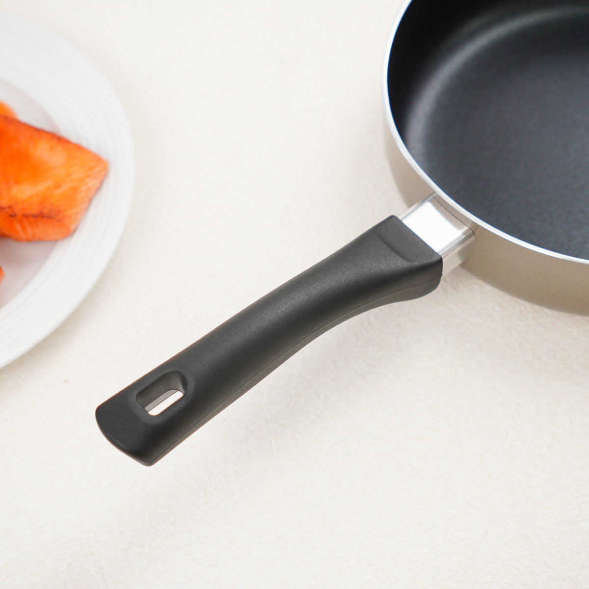 Cán chảo được làm từ nhựa bakelit cao cấp, có khả năng chịu nhiệt lên đến 180°C, giúp cầm nắm chắc chắn và an toàn khi sử dụng.