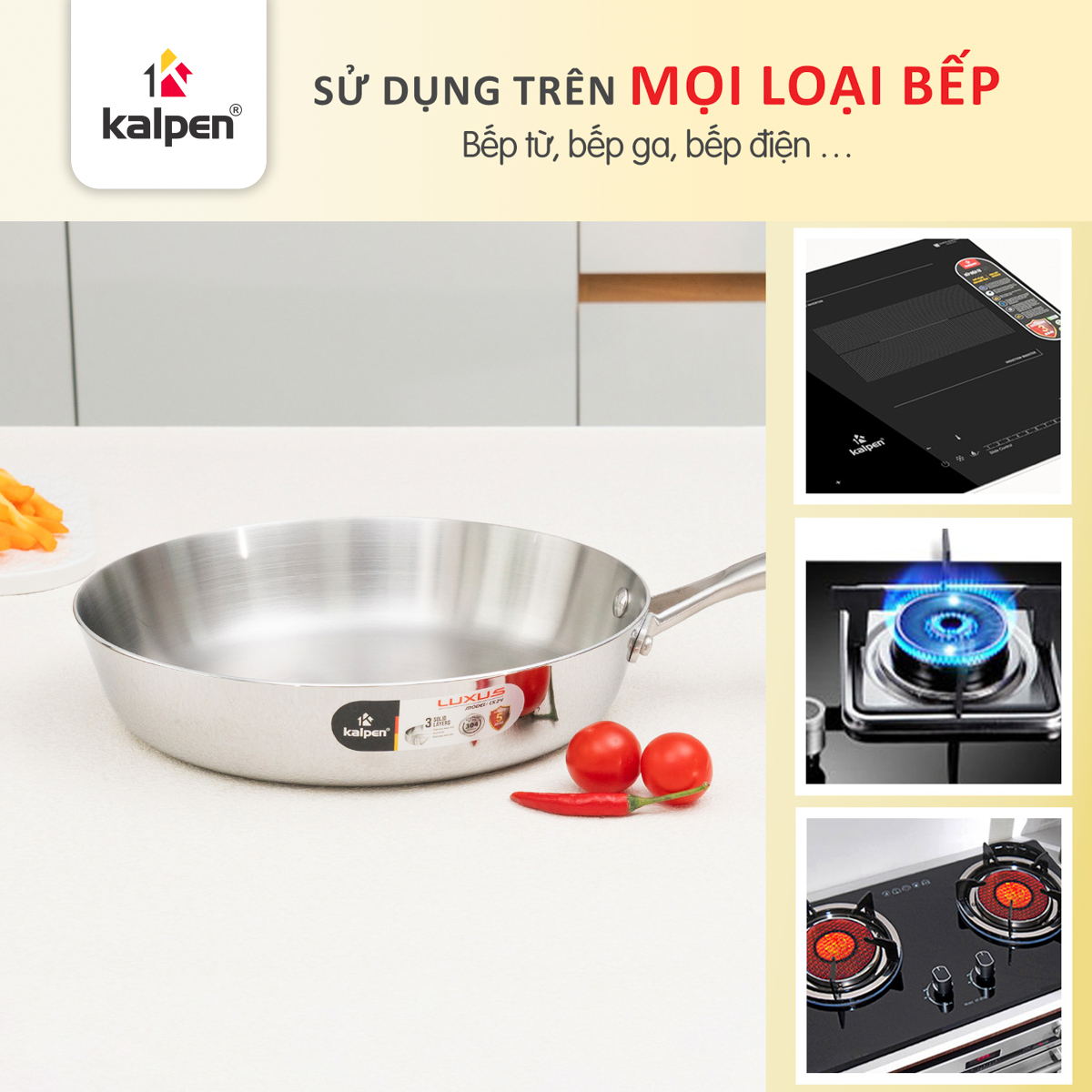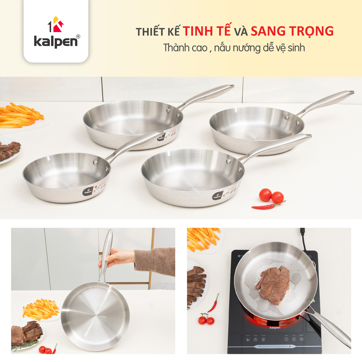 Video giới thiệu chảo Inox 304 liền khối Kalpen Luxus size 24-28 cm