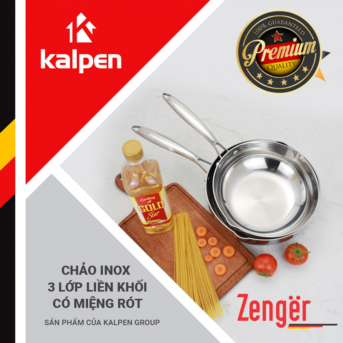 Chảo Inox 3 lớp liền khối Kalpen Zenger được sản xuất và trải qua nhiều khâu kiểm soát của tập đoàn Kalpen Group - một Tập đoàn với uy tín đã được khẳng định nhiều năm trên thị trường sản xuất và cung ứng thiết bị, đồ gia dụng nhà bếp.