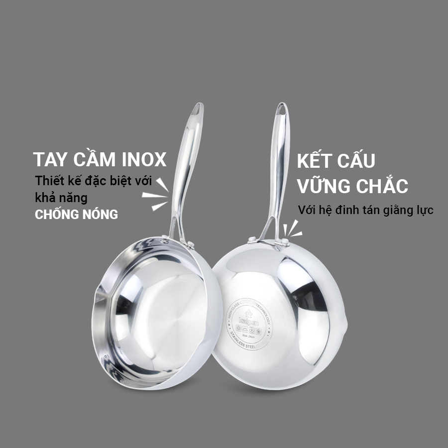 Chảo inox không chống dính Kalpen Zenger được làm từ inox cao cấp có độ sáng bóng, đẹp, vẻ ngoài hiện đại. Sản phẩm có tay cầm cách nhiệt được tán đinh giằng lực chắc chắn, không dễ bị bung lỏng như 1 số sản phẩm khác trên thị trường.