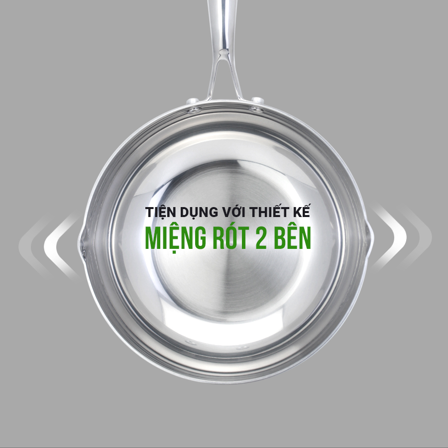 Chảo có miệng rót 2 bên giúp cho việc rót thực phẩm loãng hoặc dầu thừa được sạch sẽ và dễ dàng.