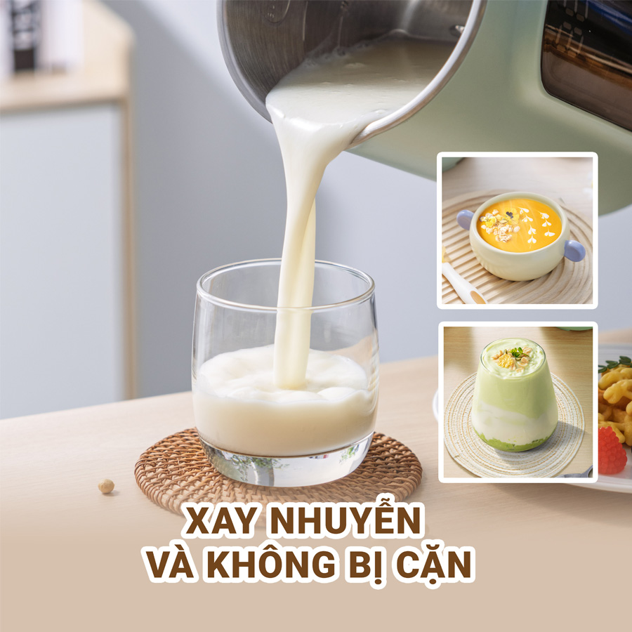 - Nhiều tính năng vượt trội: Máy còn có thể sử dụng để nấu cháo trực tiếp trong lúc xay hoặc làm các loại sinh tố, xay hạt và đậu thành các loại bột. Hơn nữa máy còn có tính năng hẹn giờ và tự động vệ sinh cối xay.