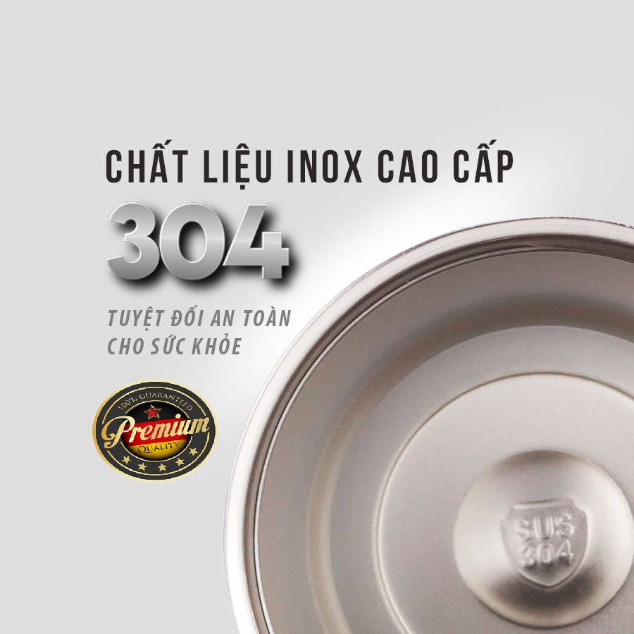 Lớp trong cùng tiếp xúc trực tiếp với thức uống là inox 304.