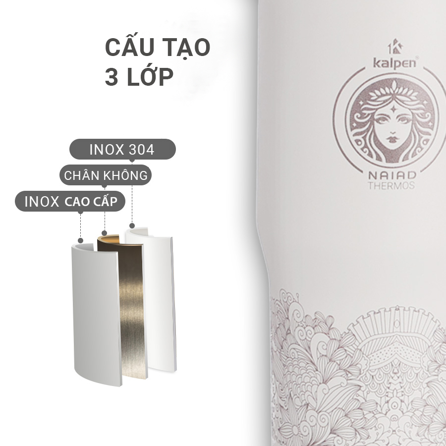 Cốc giữ nhiệt Kalpen E5, E6 được làm từ inox 304 với cấu tạo 3 lớp:
