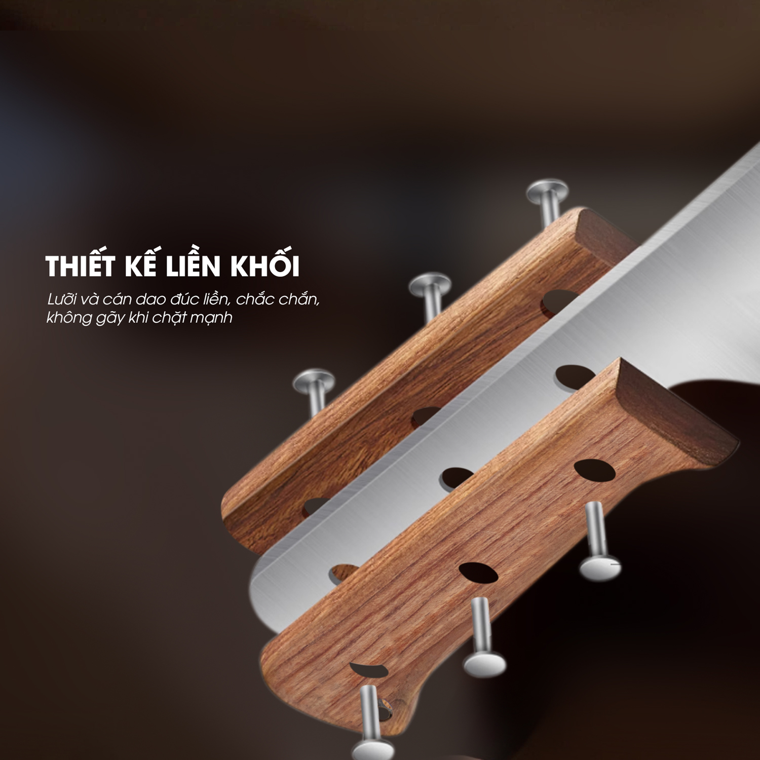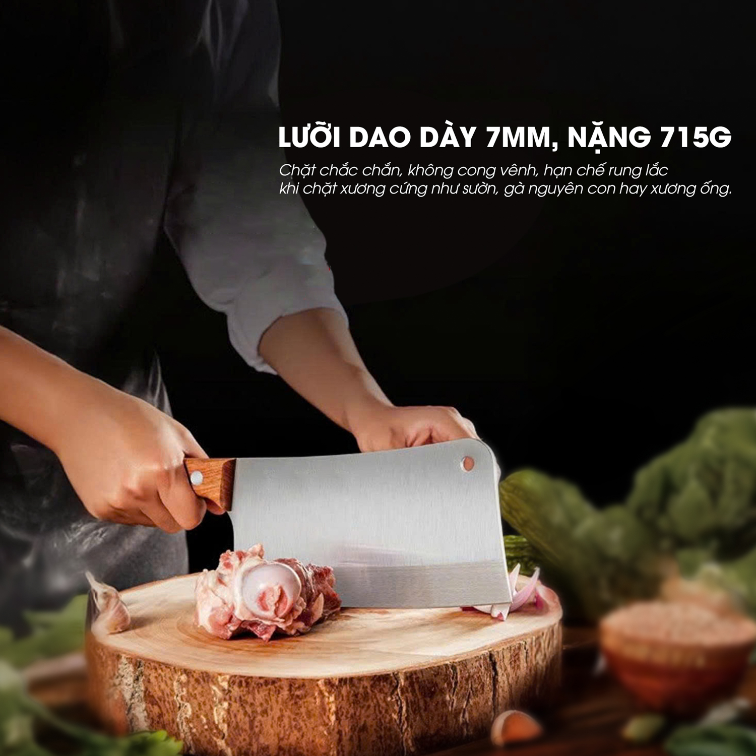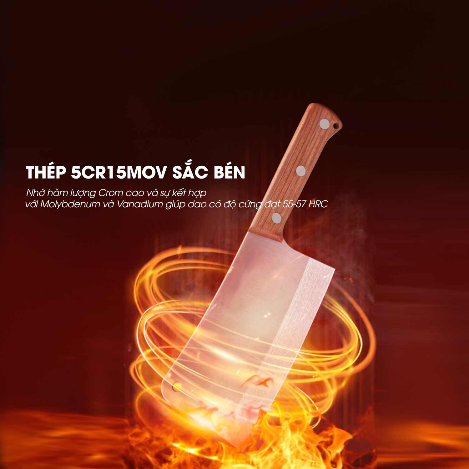 • Cứng cáp, không sứt mẻ: Được làm từ thép 50Cr15MoV, giúp dao có độ bền cao, chịu được lực tác động mạnh khi chặt xương cứng.