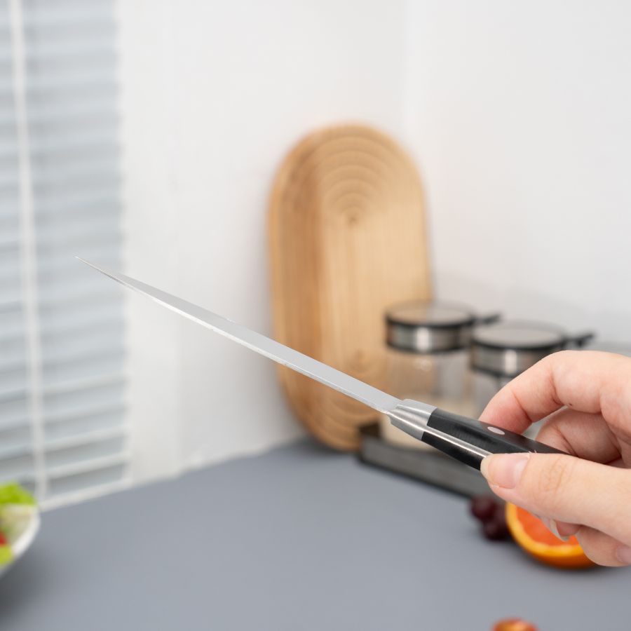 Thép 5Cr15MoV nhờ hàm lượng Crom cao và sự kết hợp với Molybdenum và Vanadium, lưỡi dao mang đến khả năng giữ cạnh sắc bén lâu dài, lý tưởng cho các công việc thái cắt hàng ngày. Chất liệu này còn dễ mài, giúp người dùng dễ dàng bảo dưỡng và duy trì độ sắc bén cho dao.