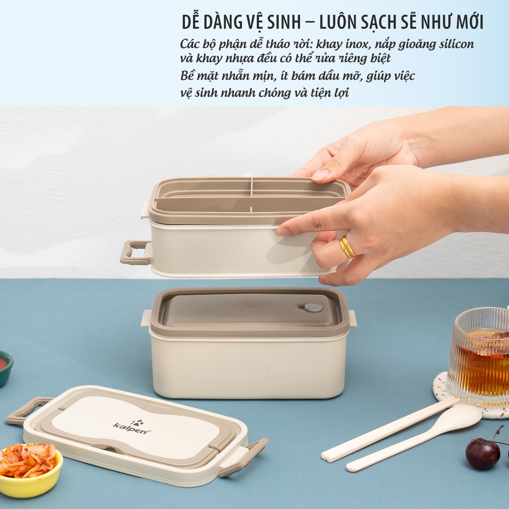 Tối ưu thiết kế: Không chỉ giữ nhiệt, Kalpen AR10 còn chống tràn, phân chia ngăn hợp lý và có phụ kiện tích hợp.