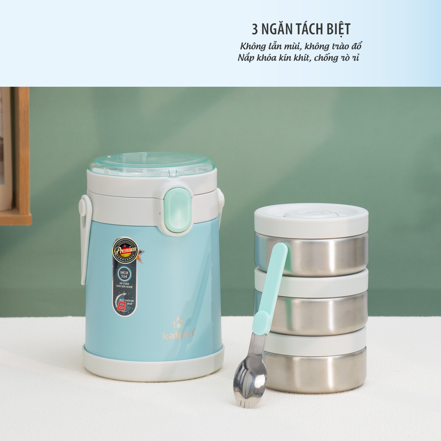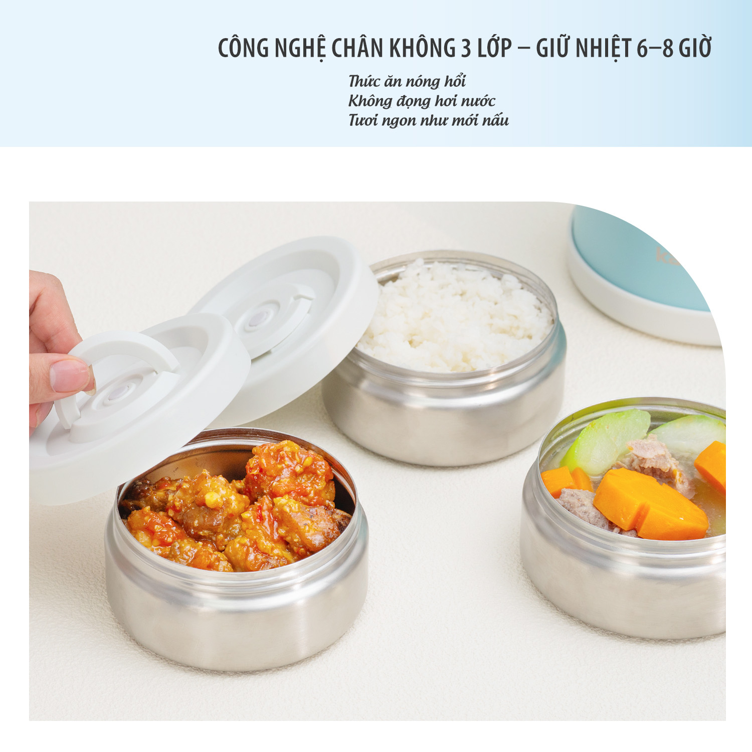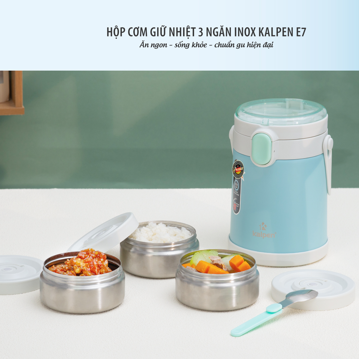 Kalpen Việt Nam giới thiệu hộp cơm giữ nhiệt inox 3 ngăn Kalpen E7.