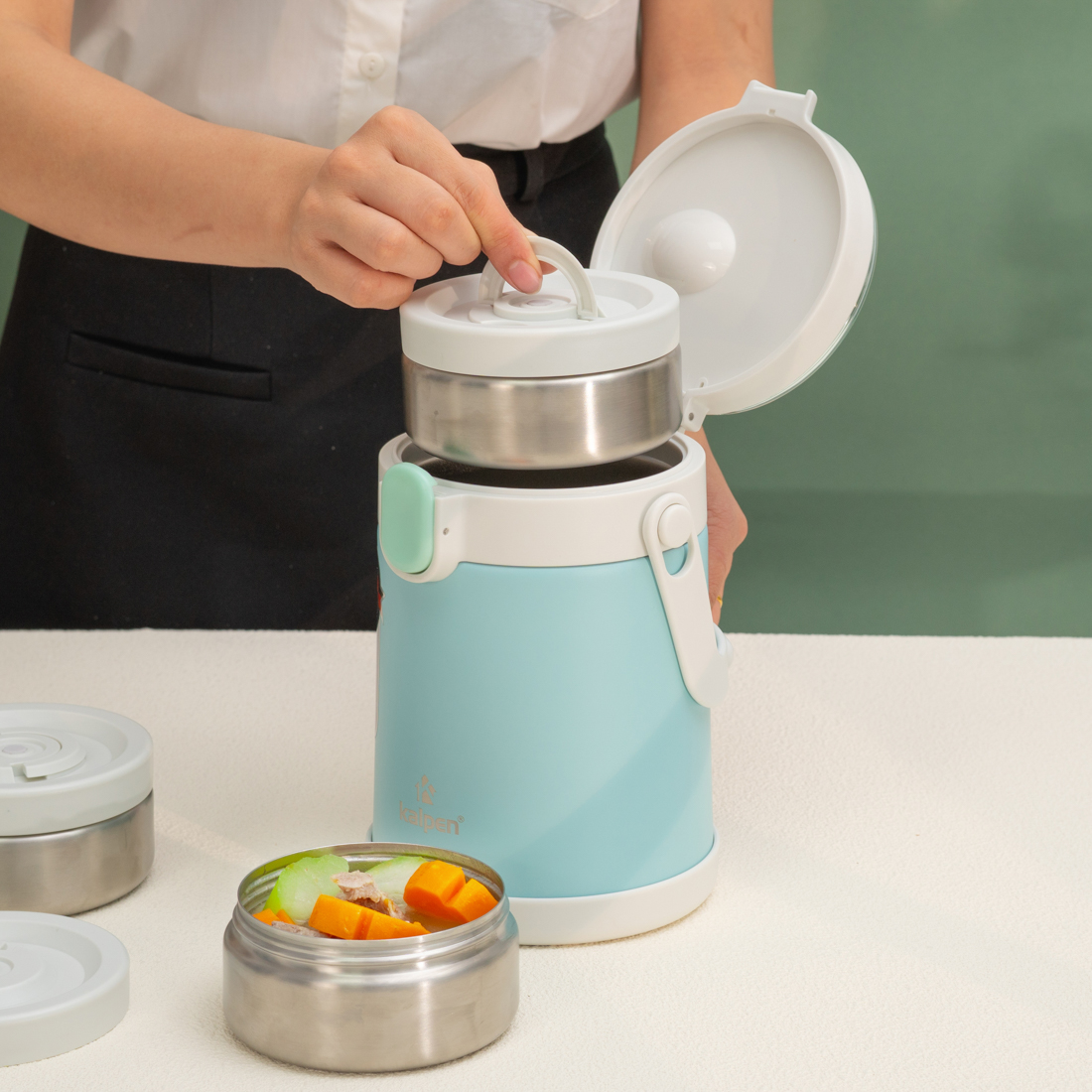 Ngoài sử dụng để mang cơm trưa, hộp cơm giữ nhiệt Kalpen E7 còn phù hợp để đựng đồ ăn dặm cho bé, cháo soup.. khi đi cắm trại, dã ngoại…