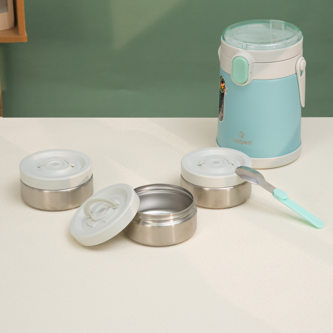 Hộp cơm giữ nhiệt inox Kalpen E7 có thiết kế nhỏ gọn, xinh xắn phù hợp để mang cơm trưa văn phòng. Hộp cơm có 3 hộp nhỏ tách biệt phù hợp cho bữa ăn với 3 món cơ bản là 1 hộp đựng cơm, 1 hộp đựng canh và 1 hộp đựng đồ ăn.