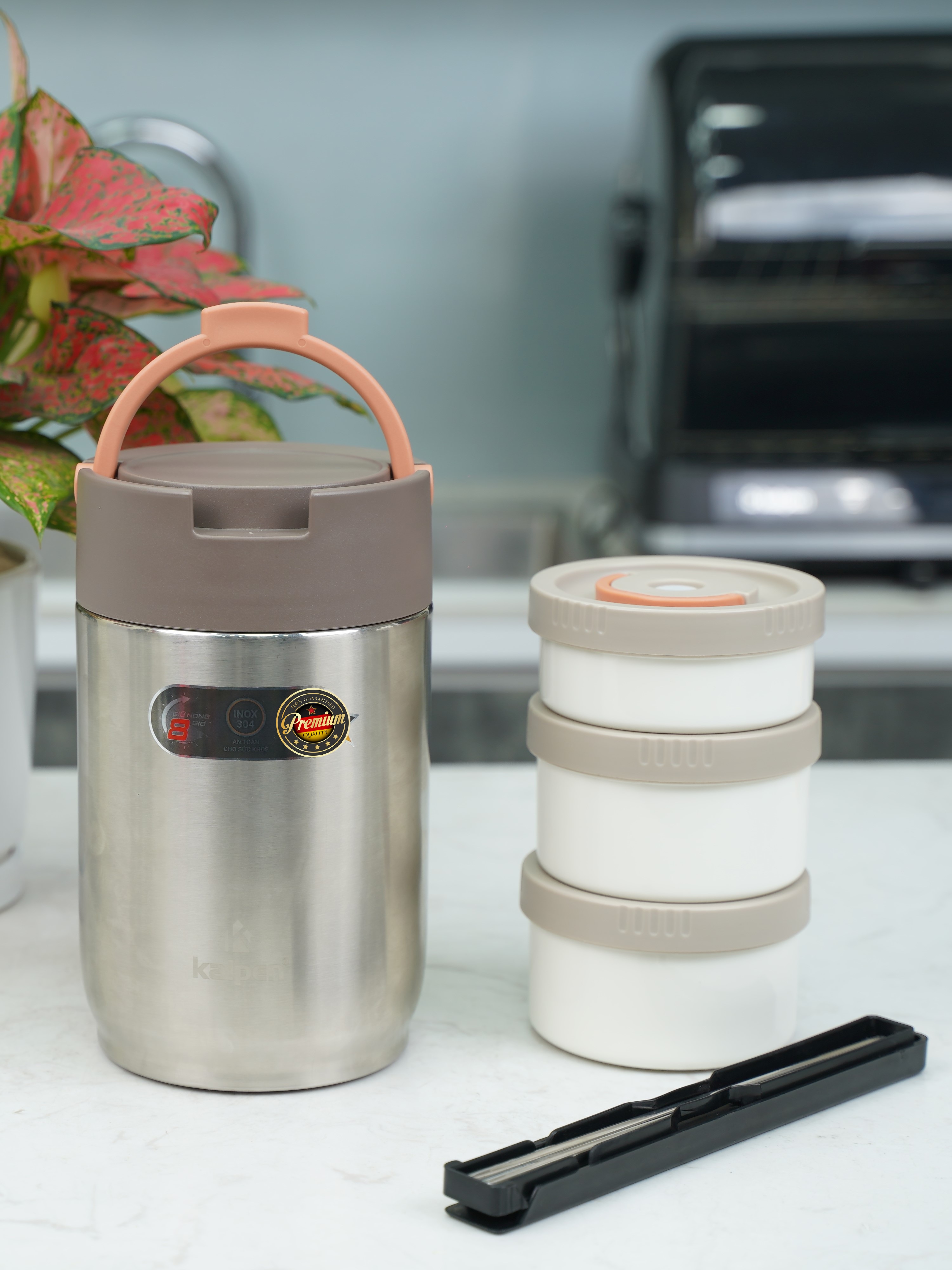 Hộp cơm giữ nhiệt 3 ngăn Kalpen I1 màu sắc trang nhã, hiện đại. Thiết kế tiện ích với 3 ngăn đựng tách biệt gồm 1 hộp nhỏ 260ml và 2 hộp lớn hơn dung tích 420ml để đựng cơm, canh và đồ ăn. Không chỉ phù hợp để mang cơm đi làm mà còn có thể sử dụng để đựng chè, cháo, đồ ăn dặm cho bé khi đi cắm trại, picnic, dã ngoại…
