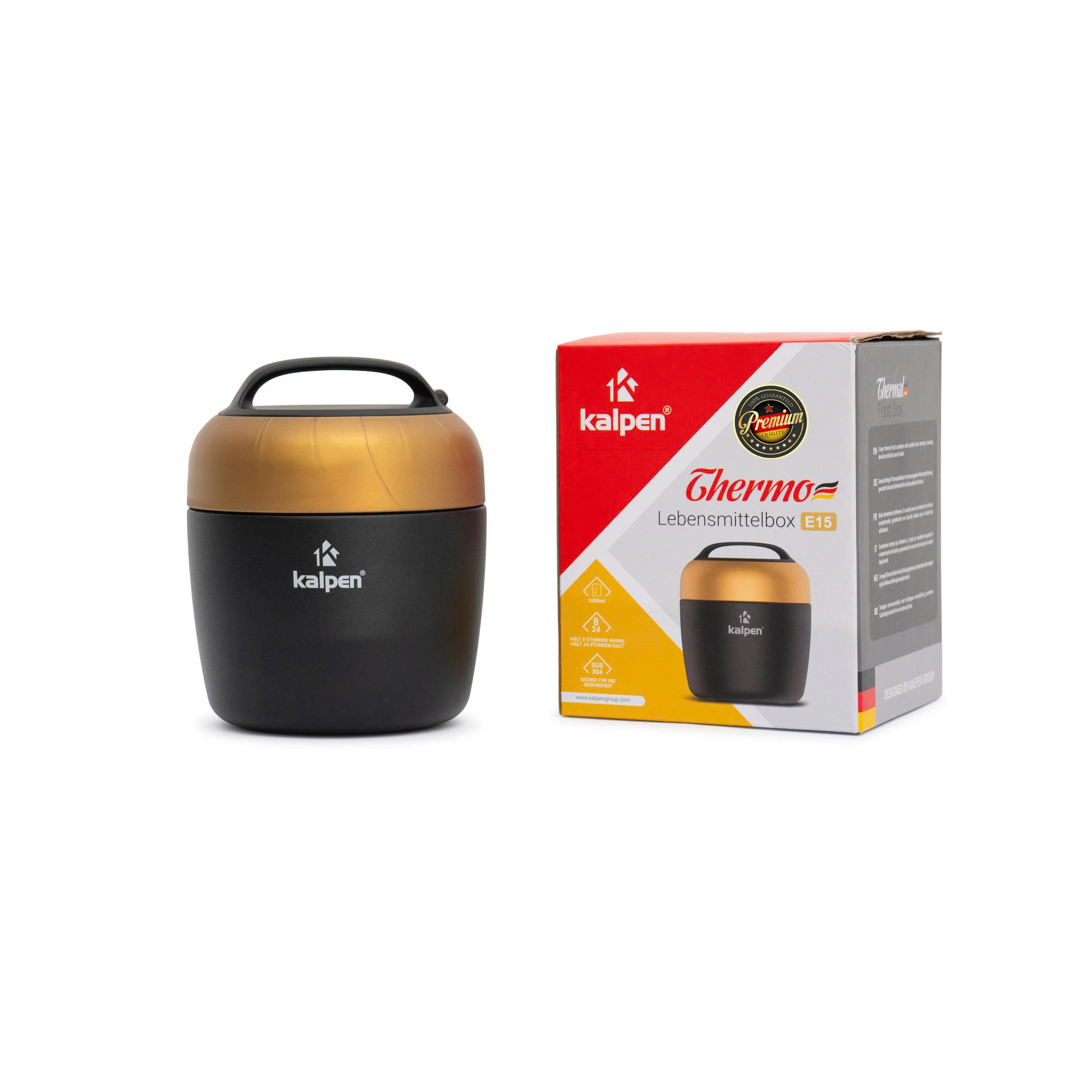 Hộp đựng thức ăn Kalpen E15 mang phong cách thiết kế châu Âu hiện đại: thân inox sáng bóng kết hợp tay cầm nhựa chống nóng màu trung tính, tạo cảm giác thanh lịch, chuyên nghiệp.