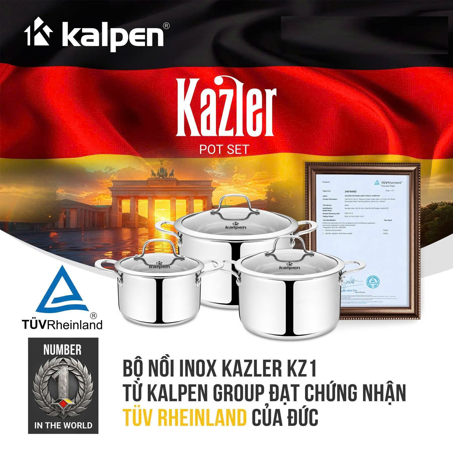 Bộ nồi Kalpen Kazler KZ1 đạt chứng nhận TÜV Rheinland (Germany–ĐỨC)