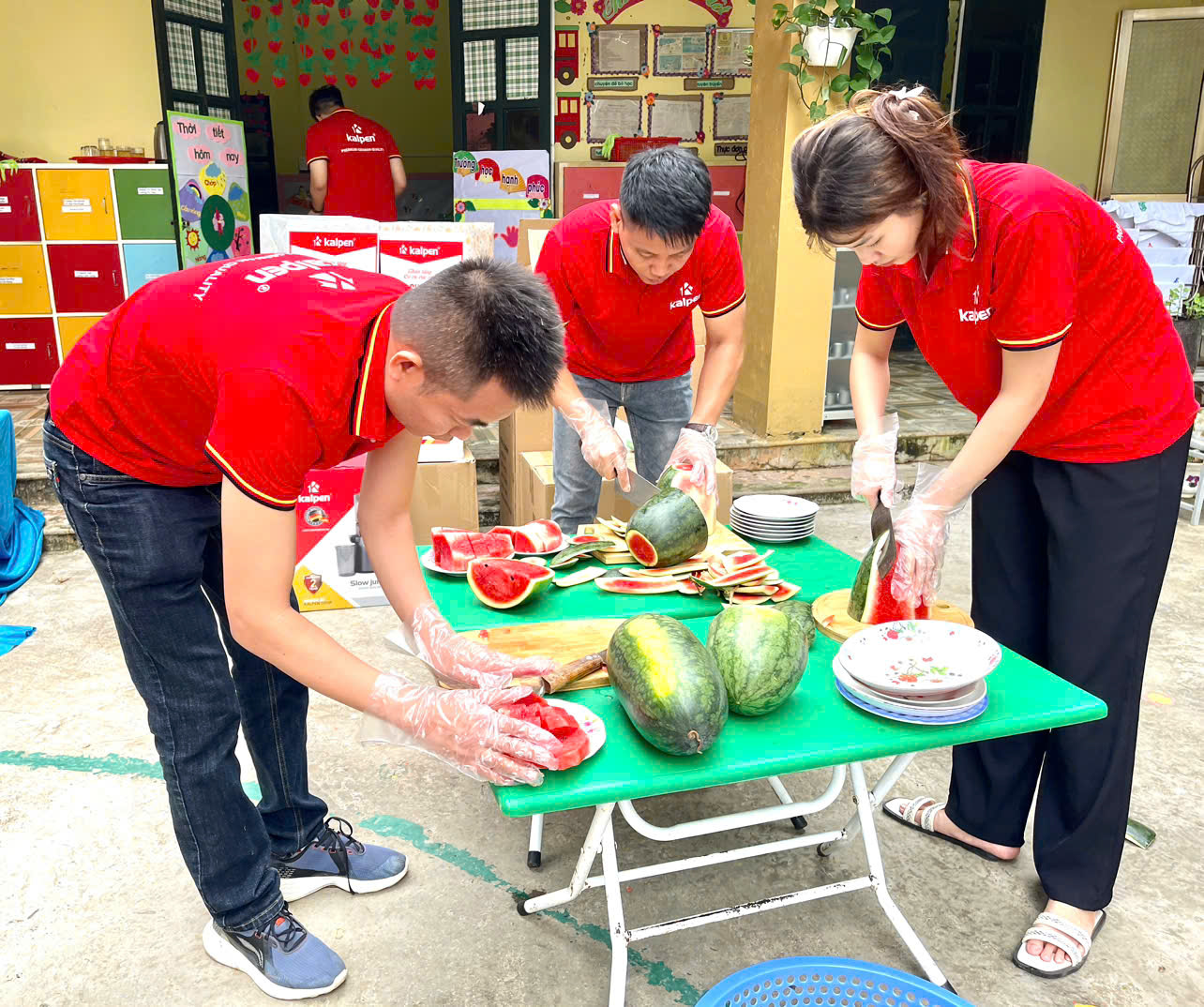 Không chỉ mang đến những phần quà, Kalpen còn tự tay chuẩn bị bữa ăn cho các em nhỏ. Đội ngũ Kalpen đã bắt tay vào công việc từ rất sớm, từ việc chọn lựa nguyên liệu tươi ngon, chế biến cẩn thận, đến việc bày biện từng phần ăn gọn gàng, sạch sẽ. Mỗi công đoạn đều được thực hiện bằng tất cả sự tận tâm và tình yêu thương.