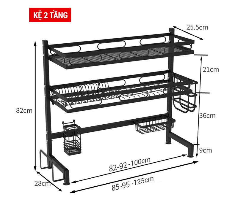 Kệ bát trên bồn rửa đa năng có các bộ phận đi kèm bao gồm: