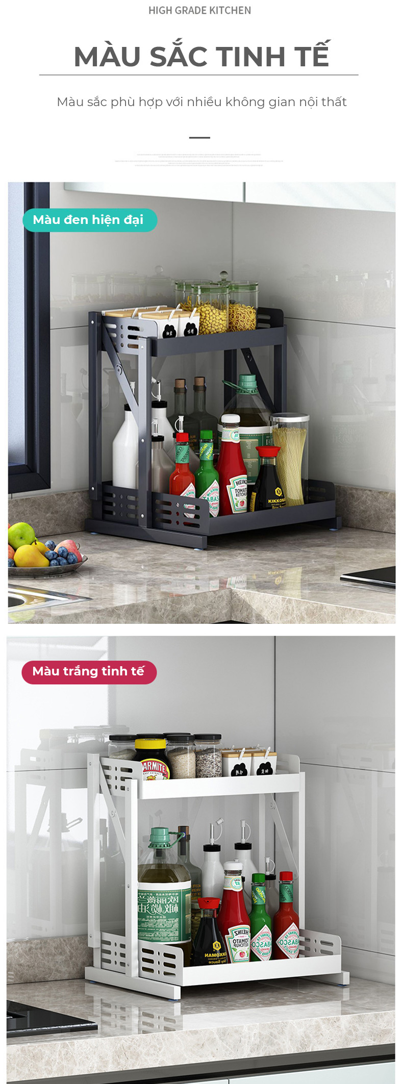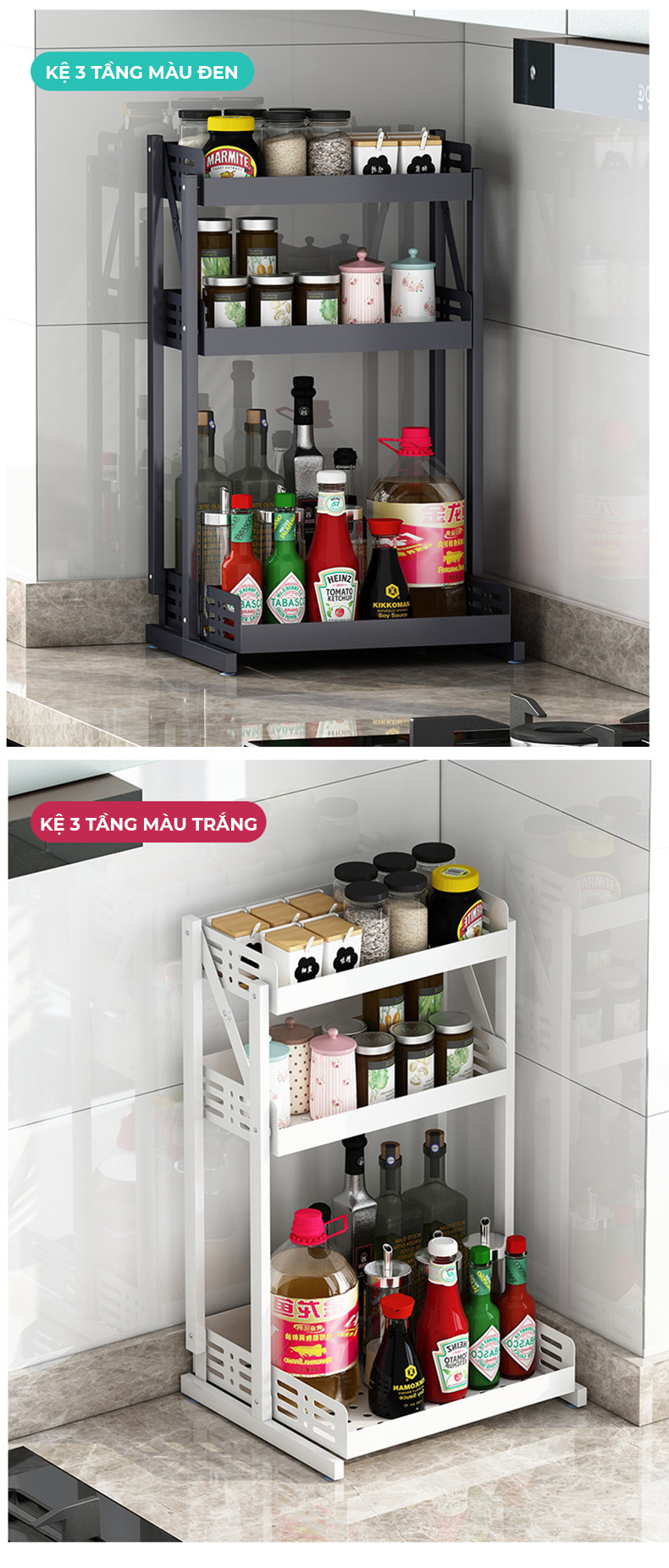 Màu sắc của kệ đựng gia vị gấp gọn 3 tầng mà chúng ta thường thấy là những màu tối giản, phù hợp với mọi môi trường như đen, trắng. Với gam màu hiện đại mà tinh tế này bạn có thể thoải mái sáng tạo thiết kế phong cách nội thất cho căn bếp của mình mà không hề phải lo lắng việc màu sắc của các thiết bị kệ ảnh hưởng đến tổng thể thẩm mỹ của căn nhà.