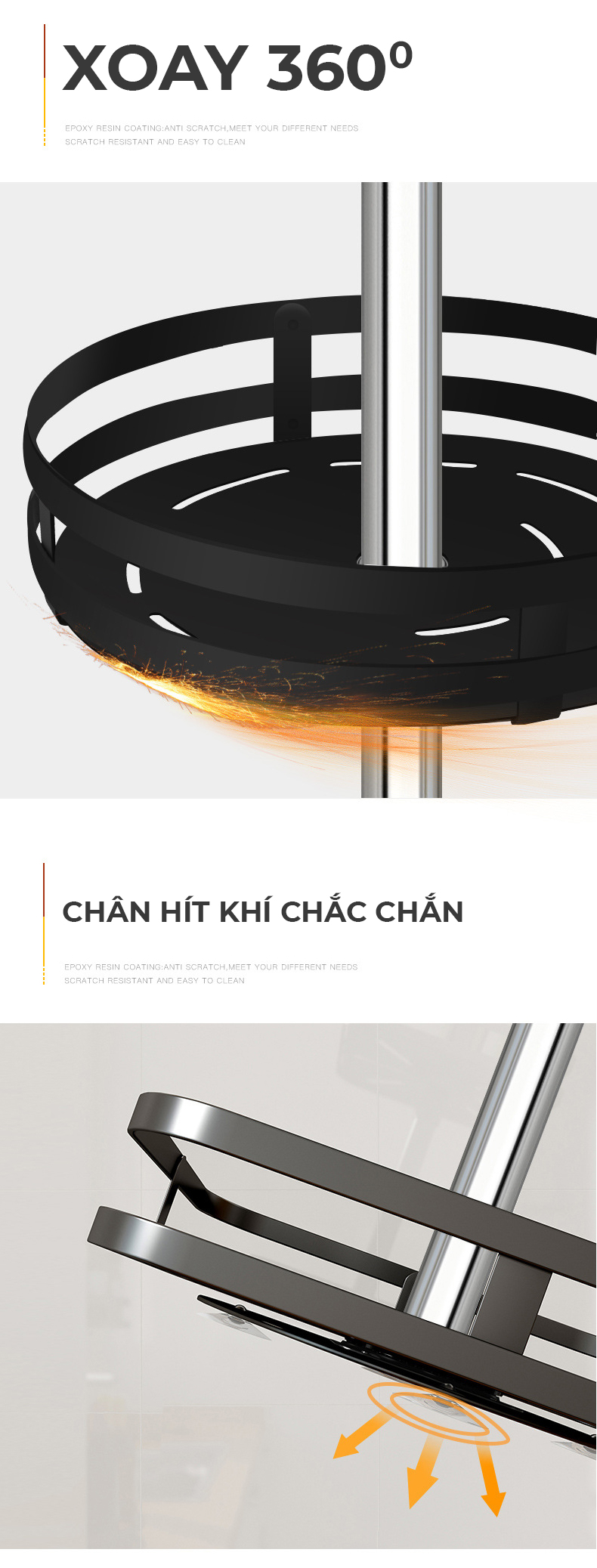 Đặc điểm của kệ đựng gia vị xoay 360 độ Kalpen đấy chính là có phần giá đỡ và đế hít khí vô cùng chắc chắn, an toàn cho người sử dụng, kể cả đối với các gia đình có trẻ nhỏ. Các chân khí bên dưới đế của kệ sẽ đảm bảo kệ có thể đứng chắc chắn, giữ thăng bằng tốt ngay cả khi đựng đồ vật nặng mà không lo bị đổ vỡ. Điều này khiến cho rất nhiều bà nội trợ yên tâm khi sử dụng kệ đựng gia vị thông minh.