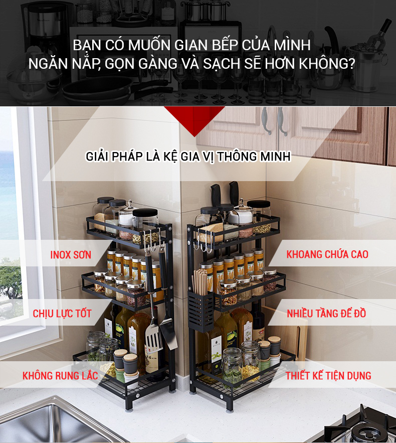 Dưới đây là 1 số các lợi ích chính mà kệ gia vị 2-3 tầng Kalpen đem lại cho quý khách hàng khi sử dụng: