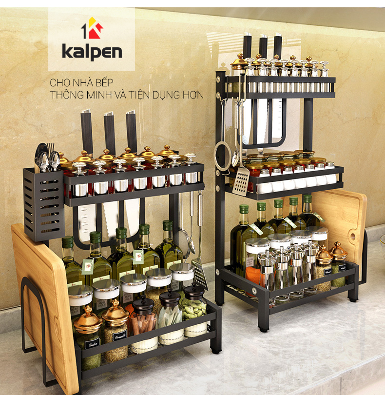 Hiểu được khó khăn này của rất nhiều các gia đình nội trợ tại Việt Nam, Kalpen đã cho ra mắt tại thị trường dòng sản phẩm kệ gia vị thông minh 2-3 tầng với thiết kế đầy khoa học giúp bảo quản gia vị nhà bếp 1 cách tiện lợi nhất.