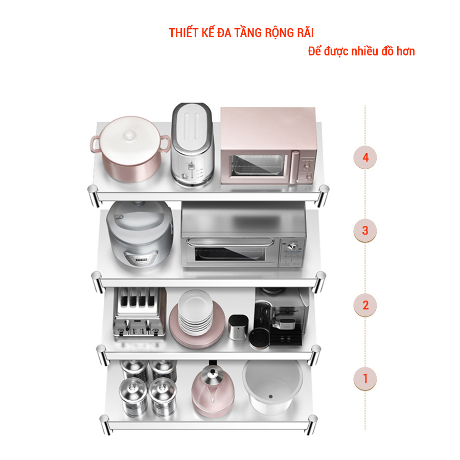 Bạn có thể sử dụng kệ để đựng: lò vi sóng, sử dụng để đựng các loại gia vị, các loại hộp khay hoa quả hoặc có thể đựng xoong nồi bên trong những chiếc kệ này đều được. Có thể đựng với nhiều đồ dùng nhà bếp cùng 1 lúc sẽ giúp bạn tiết kiệm được không gian và diện tích chứa đồ, đồng thời bạn cũng sẽ không phải tốn quá nhiều chi phí cho việc bảo quản từng loại đồ dùng riêng rẽ.