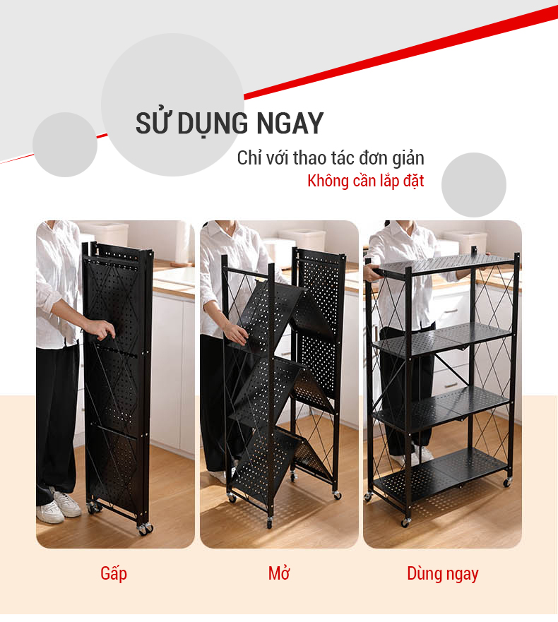 ➡️ Gấp mở đơn giản chỉ 1 phút có ngay 1 kệ để đồ vô cùng tiện lợi