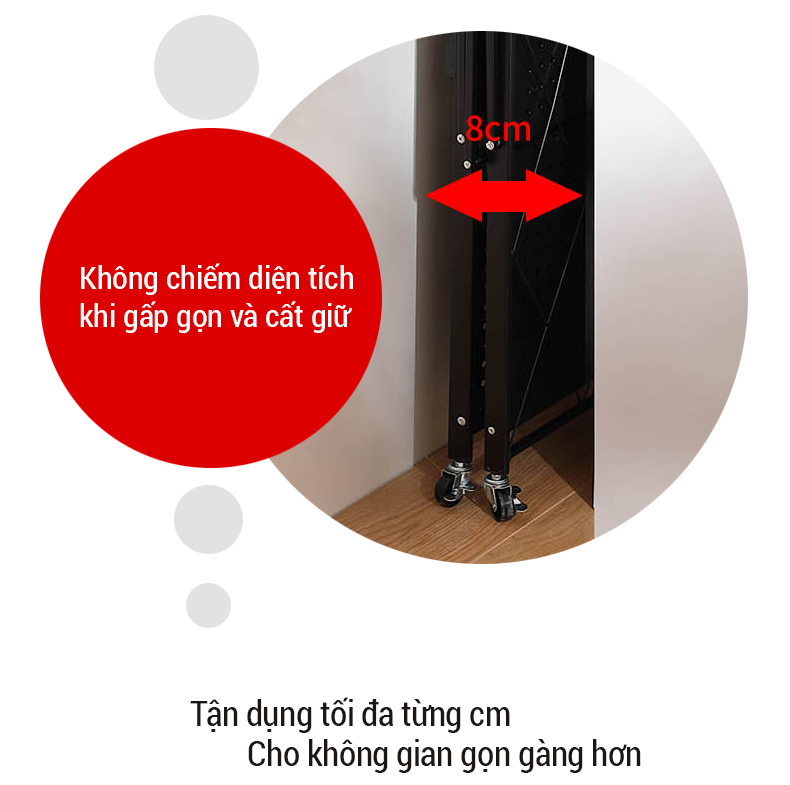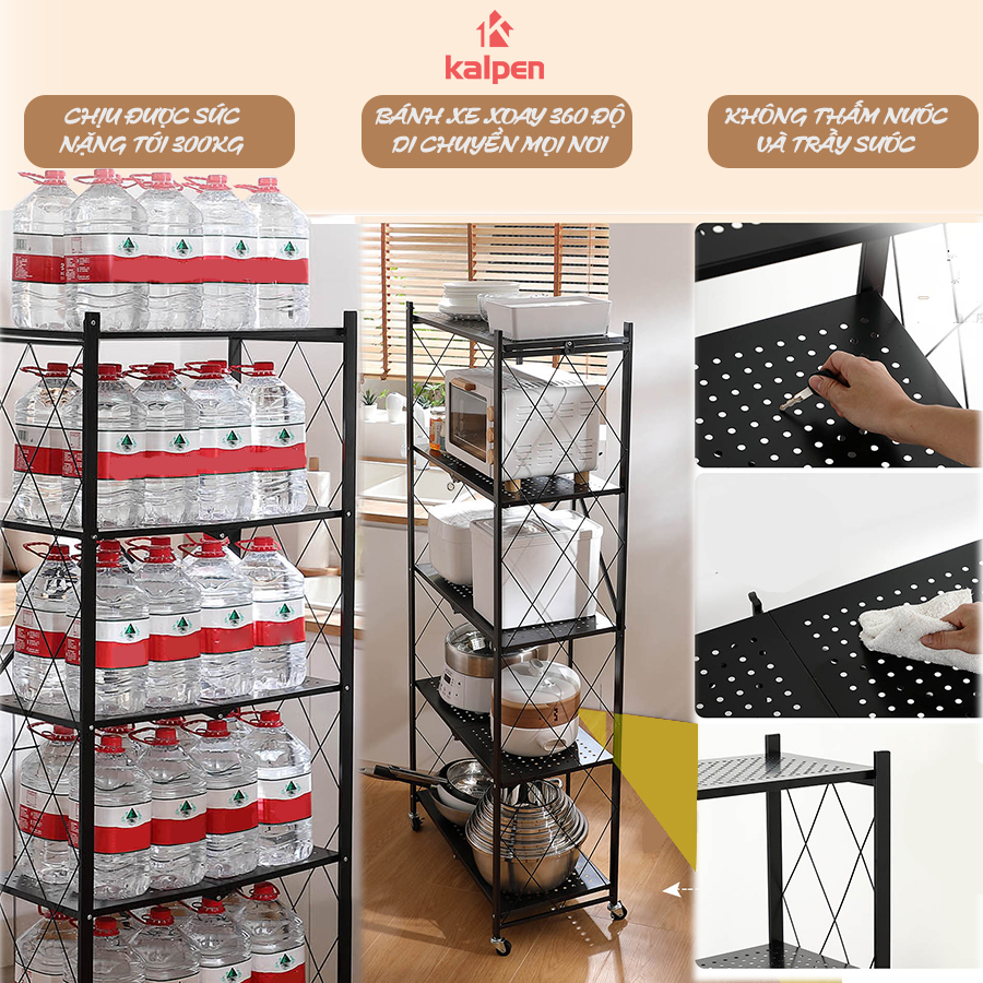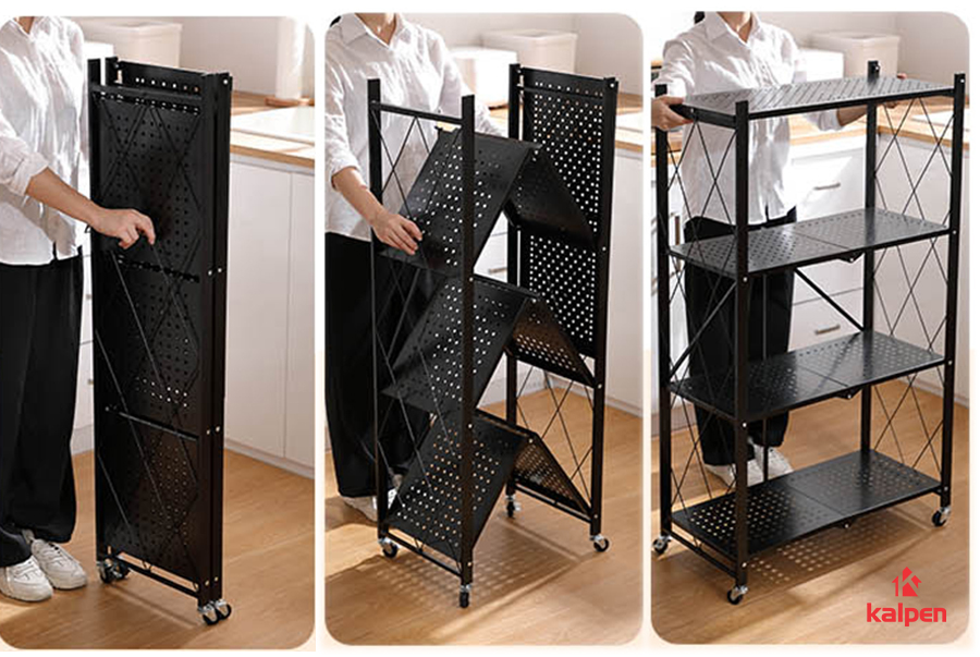 Không giống như các loại kệ thông thường khác, sản phẩm kệ thông minh của Kalpen có thể gấp lại cực kỳ gọn gàng, tính năng này giúp tiết kiệm nhiều diện tích tối đa khi bạn không sử dụng. Bên cạnh đó, các bánh xe của kệ đa năng gấp gọn giúp người sử dụng có thể di chuyển kệ một cách đơn giản và nhanh chóng mà không cần lo lắng về vấn đề làm đổ vỡ hay trầy xước nền nhà.
