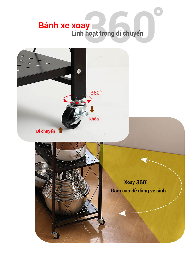 ➡️ Thiết kế bánh xe 360 độ, tiện lợi di chuyển