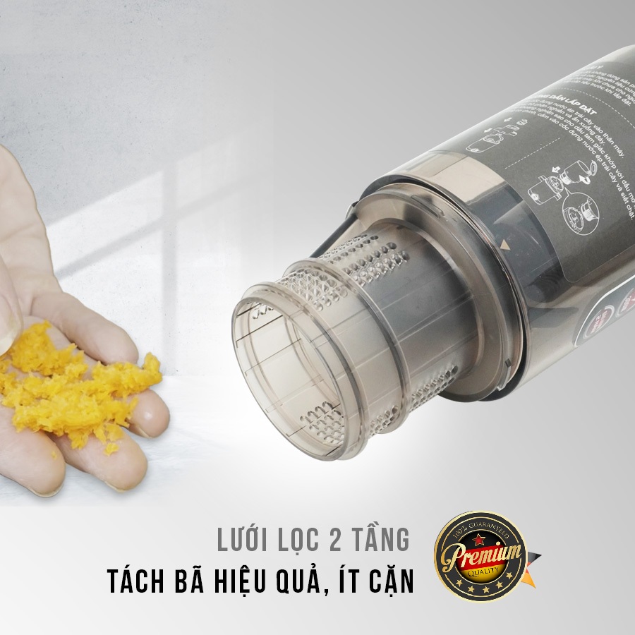 Hệ thống lưới lọc 2 tầng giúp tách bã hiệu quả, mang đến nước ép mịn hơn, ít cặn bã, giúp bạn có một ly nước ép tinh khiết hơn.