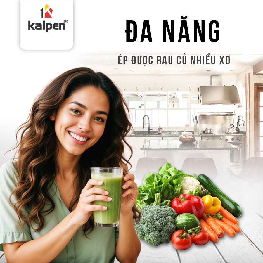 Máy có khả năng ép không chỉ trái cây mà còn xử lý hiệu quả các loại rau củ xơ cứng như cần tây, cải kale…, đáp ứng đa dạng nhu cầu sử dụng của gia đình.