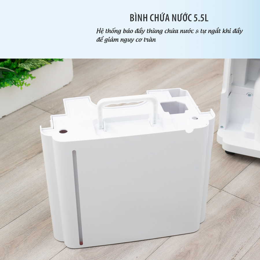 Bình chứa nước 5.5L – dung tích lớn giúp giảm số lần đổ nước, đặc biệt hữu ích trong những ngày ẩm kéo dài.