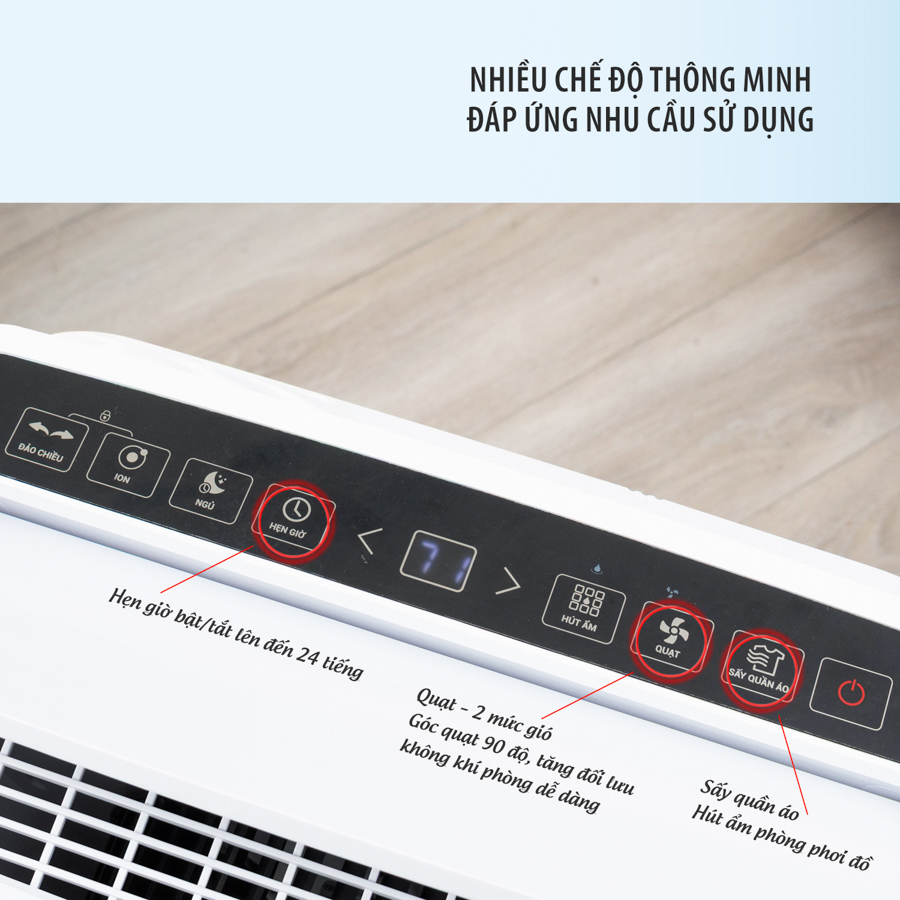 Dehumidifying: Chế độ hút ẩm chính, duy trì độ ẩm tối ưu cho không gian sống.